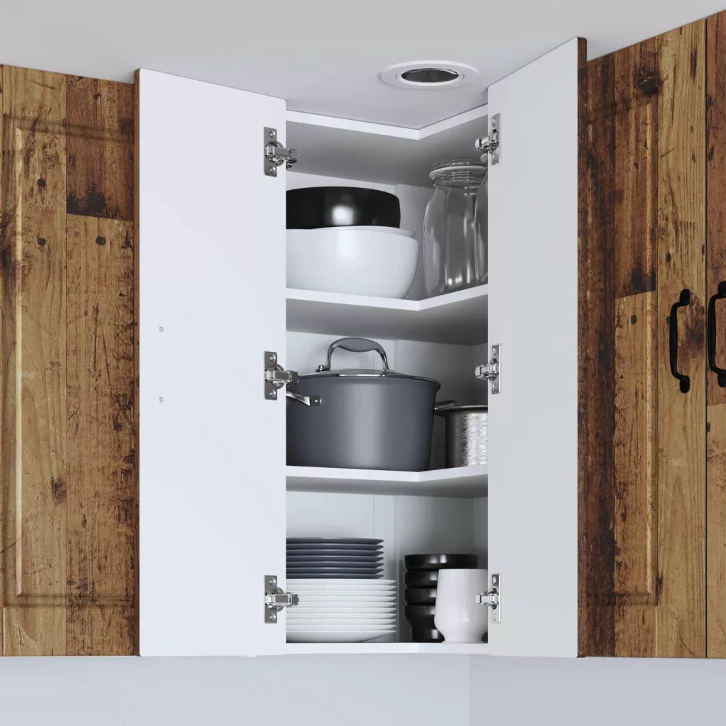 Ez a konyhai szekrény egy modern, fából készült bútor, amely letisztult és kortárs dizájnt képvisel. Mérnöki fából készült, így tartós és praktikus a beltéri használatban. Eleganciát ad a konyhádnak a tiszta vonalaival és minimalista díszítésével. Bőséges tárolóhelyet biztosít polcain, tökéletesen illeszkedik a modern dizájnhoz, és emeli a főzési tér hangulatát.