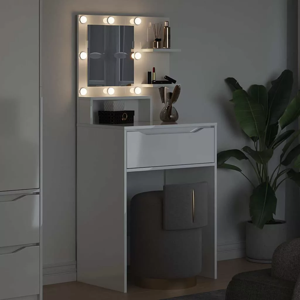 Ez a modern hálószoba öltöztető asztal tökéletesen ötvözi a stílust és a praktikumot, épp megfelelő dizájnnal és elegáns világítással. A letisztult vonalak és minimalista díszítések a mai trendet emelik ki, így illik a kortárs otthonok világába. Igazi no.1 választás a szépség- és ápolási igényekhez, bőséges tárolóhellyel.