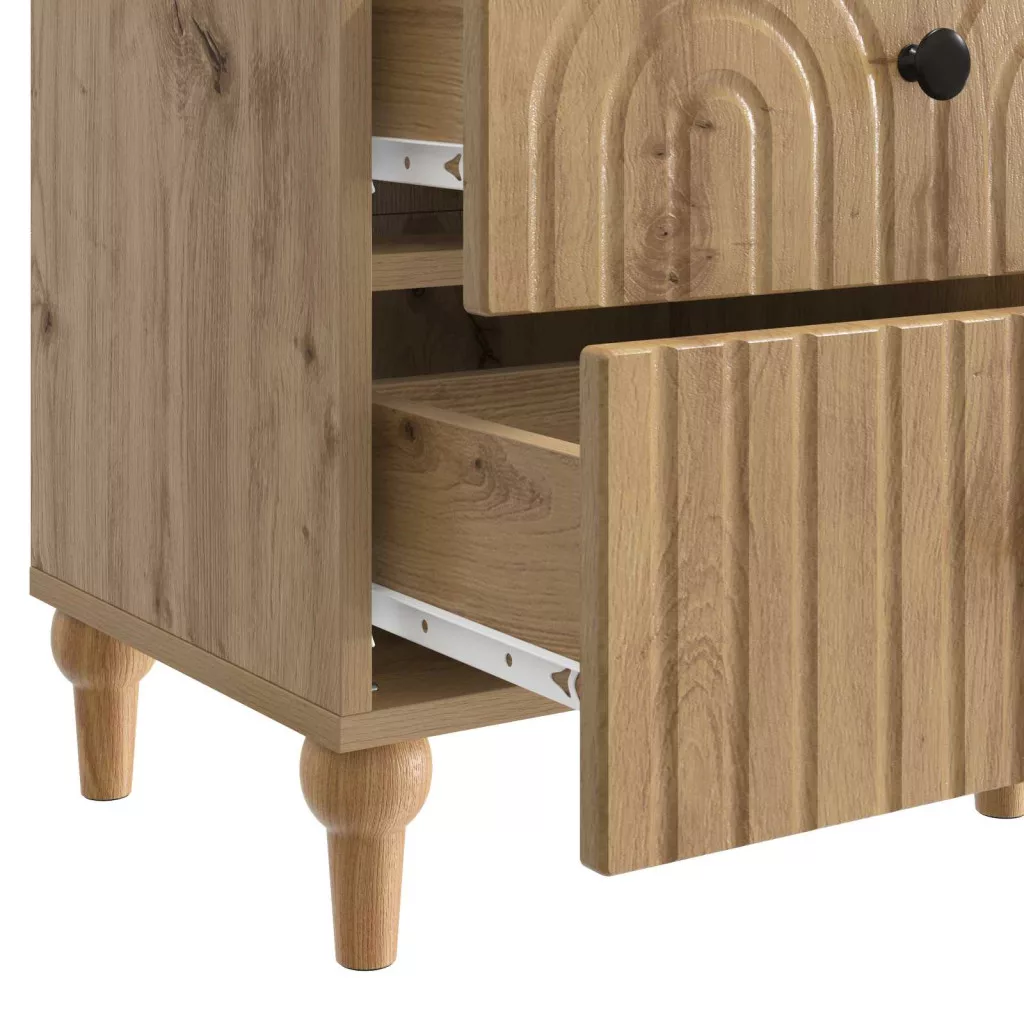 Ez a modern éjjeliszekrény egy stílusos kiegészítő minden szobához. Elegáns téglalap formájával és letisztult vonalaival, ami a kortárs dizájn jellegzetessége. A finom csíkos minta miatt könnyen beilleszthető különböző dekorációkba. A 43 x 34,5 x 48 cm-es mérete rengeteg helyet kínál az ágyad mellett, lámpáknak és könyveknek vagy más szükséges dolognak. Minimalista megjelenésével tökéletes választás mindenkinek, aki szereti a stílust és a funkciót, ideális modern otthonokhoz.