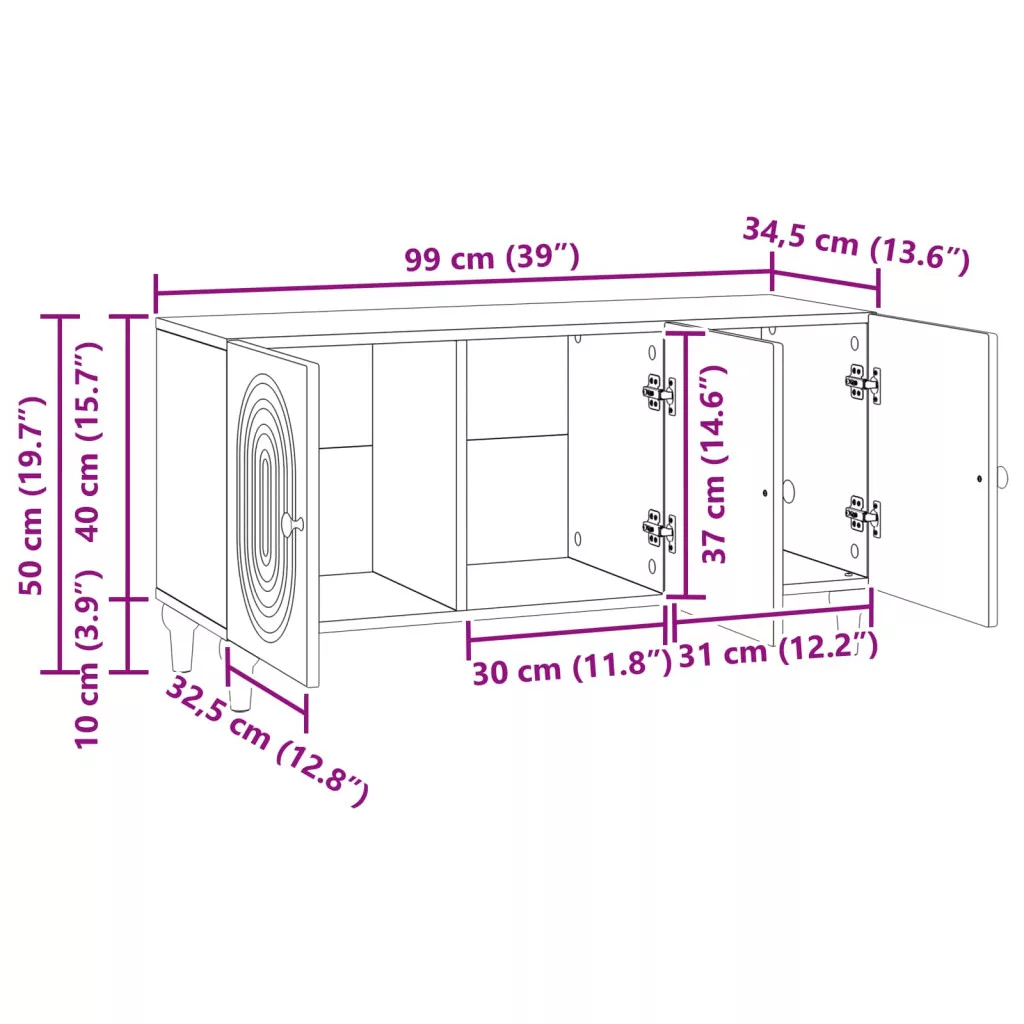 - Általános dimenziók: 99 x 34,5 x 50 cm (Ho x Szé x Ma)