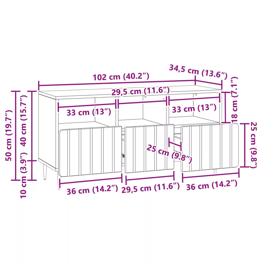 - Általános dimenziók: 102 x 34,5 x 50 cm (Ho x Szé x Ma)