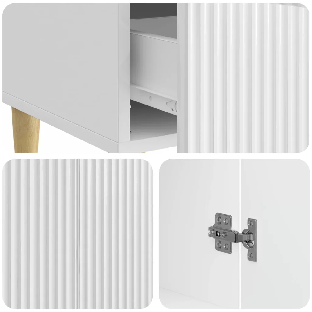 - Jellemzők /funkciók /dizájn: A dizájn állítható polcokkal integrálódik, lehetővé téve a vásárlók számára, hogy a tárolóhelyet az igényeikhez igazítsák. Ez a rugalmasság segít a maximális helykihasználásban, és rugalmas lehetőségeket nyújt a komódon belüli tárgyak rendezésére.