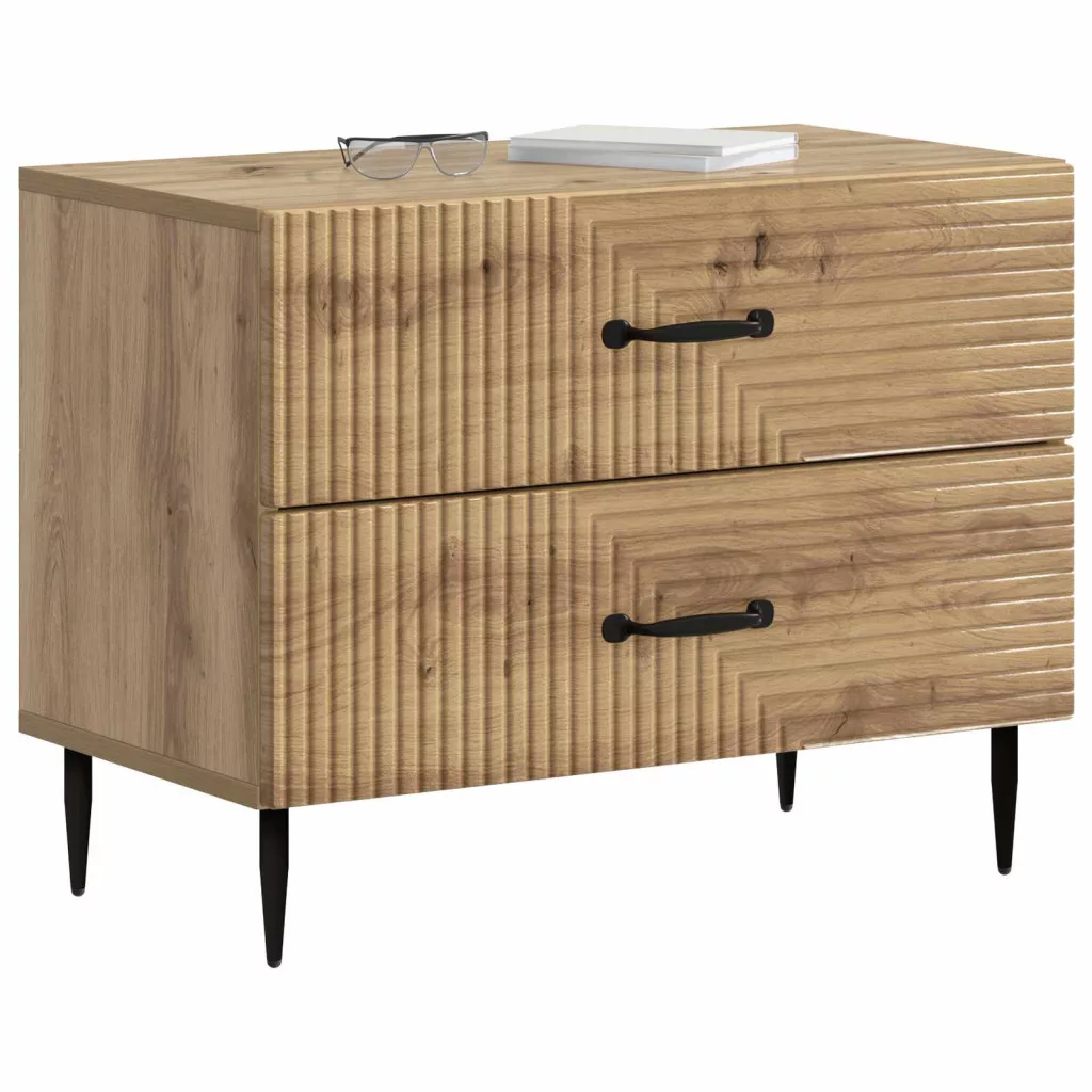 Ez a modern éjjeli szekrény vintage stílusban készült, így bátran beilleszthető bármilyen hálószoba dekorációjába, hiszen funkcionális kényelmet és esztétikai vonzerőt biztosít. A téglalap alakú és 62 x 34,5 x 47,5 cm-es mérete miatt ideális kisebb terekhez is, miközben figyelemfelkeltő megjelenést nyújt. Az éjjeli szekrény a lámpák, ébresztőórák vagy egyéb apróságok tárolására is tökéletes, és remekül tükrözi az időtlen stílust, kellemes légkört varázsolva az évszak bármely részében.