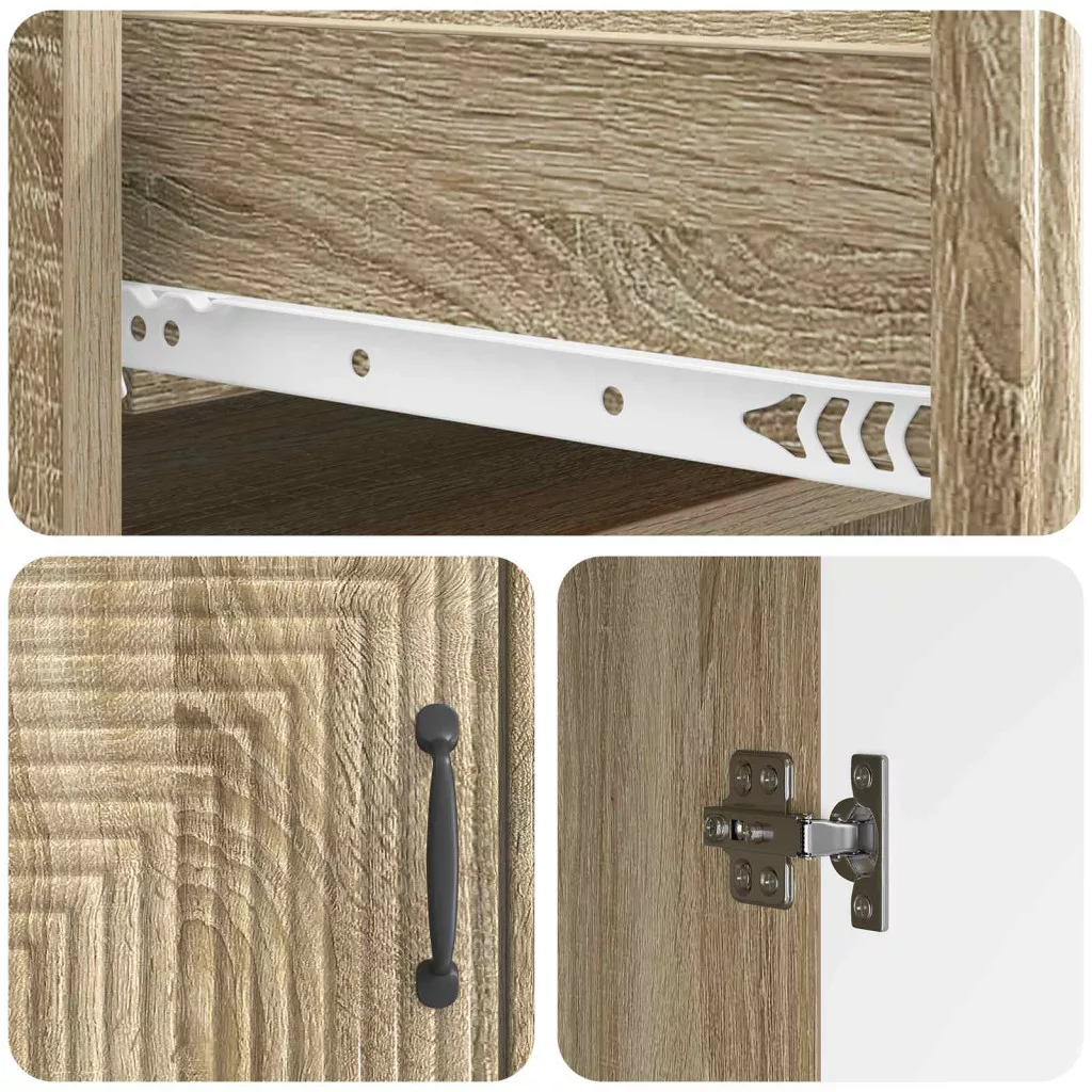 - Mérnöki Fa Kivitelezés A tálaló teste teljesen mérnöki fából készült, ami tartós és környezetbarát. Az anyag sima, stílusos felületet biztosít, ami tökéletes a rendezett megjelenéshez, így bármely időszakban csak rá kell nézni.
