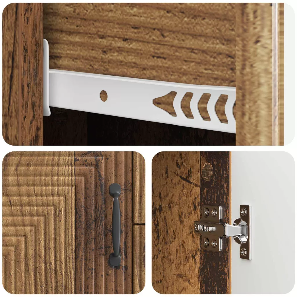 - Tartozékok: Különböző, megemelt lábakkal lett megalkotva, amik karcsú támaszt nyújtanak. A polcok, a mérnöki fa ajtók és a megbízható bárfogantyú dizájn kombinációja megkönnyíti a tárolás elérését, optimalizálva a használhatóságot.