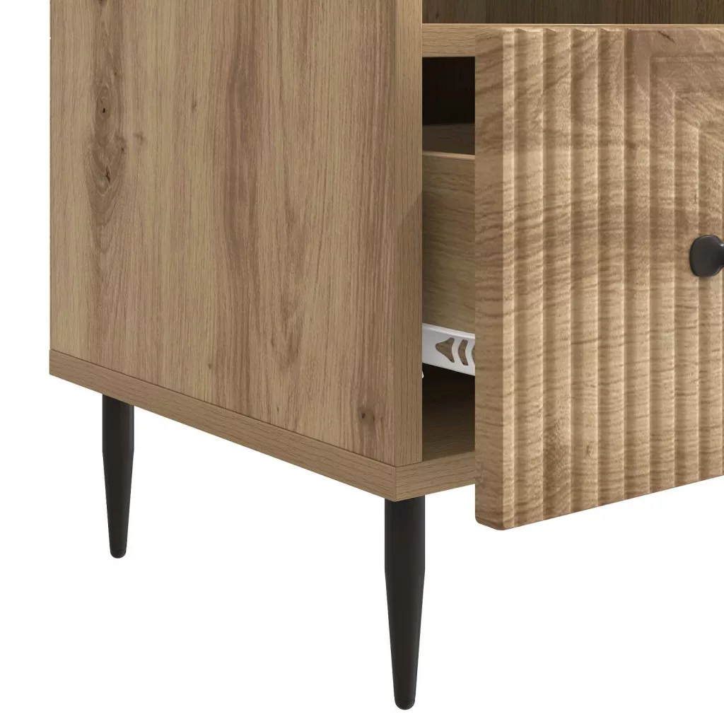 Ez a modern TV szekrény feldobja a nappalidat alacsony profiljával és letisztult dizájnjával. Keveri a vintage bájt a modern funkcionalitással. Mérnöki fából készült, elegáns felületet kínál a tévének, miközben bőséges helyet biztosít a média kiegészítőknek és dekornak. A szekrény stílusos megjelenése passzol a különféle belső terekhez, így remek választás bármely otthonba.