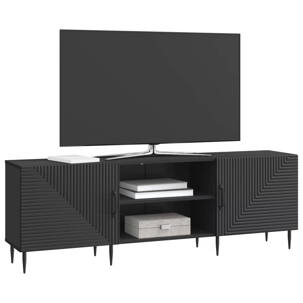 Ez a modern TV szekrény igazi figyelemfelkeltő darab a nappaliban. Téglalap alakú, vintage stílusú, és az eleganciája mellett a tárolást is jól megoldja. Mérnöki fa felhasználásával készült, így tartós és klasszikus bútorokkal is jól mutat. A fekete kúpos lábak modern megjelenést kölcsönöznek, és a középpontban van a szórakoztató berendezésnek. Bőséges tárolókapacitásával és sokoldalúan használható, amely tökéletesen ötvözi a funkciót és a dizájnt, hogy feldobja a teret.