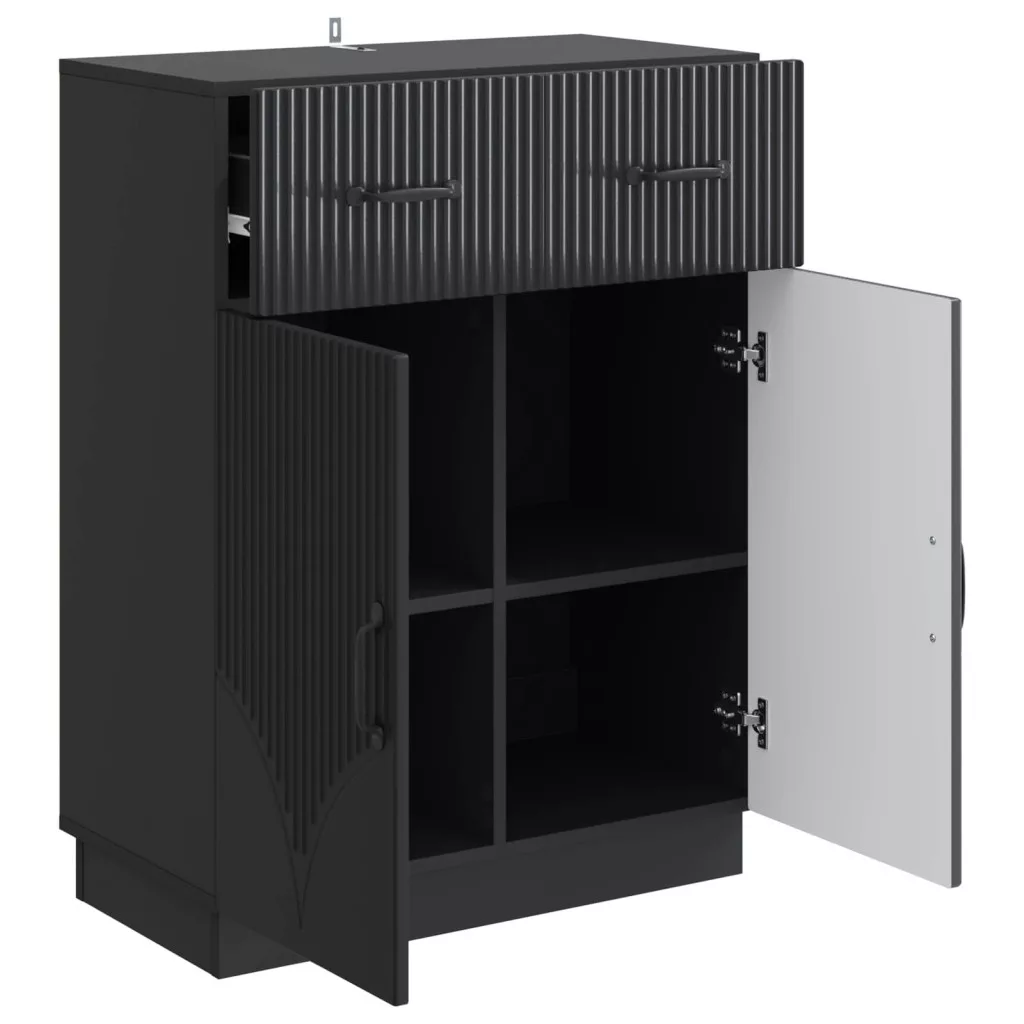 - Beépített alkatrészek: Rengeteg rekesszel és polccal rendelkezik, így különböző háztartási tárgyak tárolására tökéletes. Praktikus polcrendszere megkönnyíti a rendszerezést, míg az ajtók a magánélet védelméről és a stílusról gondoskodnak.