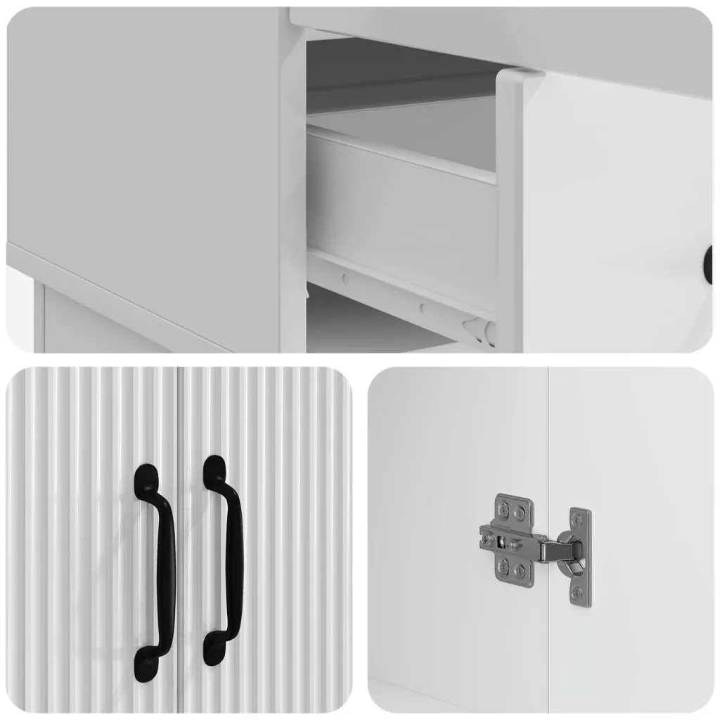 - Prémium anyagok: Ez a sideboard masszív, mérnöki faragott kerettel készült, így hosszú távú tartósságot nyújt, miközben megőrzi modern kinézetét. A mérnöki fa stabilitást biztosít, és ellenáll a torzulásoknak, így évekig megbízható társ marad, akár egy zűrös helyiségben is. A sima felület könnyen tisztítható, így mindig jól mutat.
