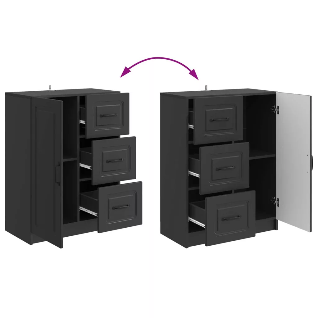 - Kényelmes ajtók és fiókok A tálalószekrény 90°-os ajtókkal és fiókokkal van felszerelve, ami lehetővé teszi a tárolt dolgok egyszerű hozzáférését. Ezek a funkciók nagymértékben megkönnyítik a tárolást és használatot, javítva ezzel a szoba funkcionalitását.