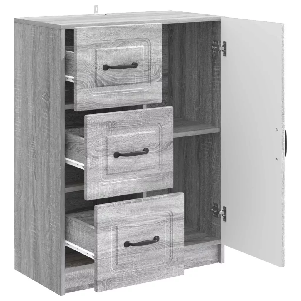 - Kényelmes ajtók és fiókok A tálalószekrény 90°-os ajtókkal és fiókokkal van felszerelve, ami lehetővé teszi a tárolt dolgok egyszerű hozzáférését. Ezek a funkciók nagymértékben megkönnyítik a tárolást és használatot, javítva ezzel a szoba funkcionalitását.