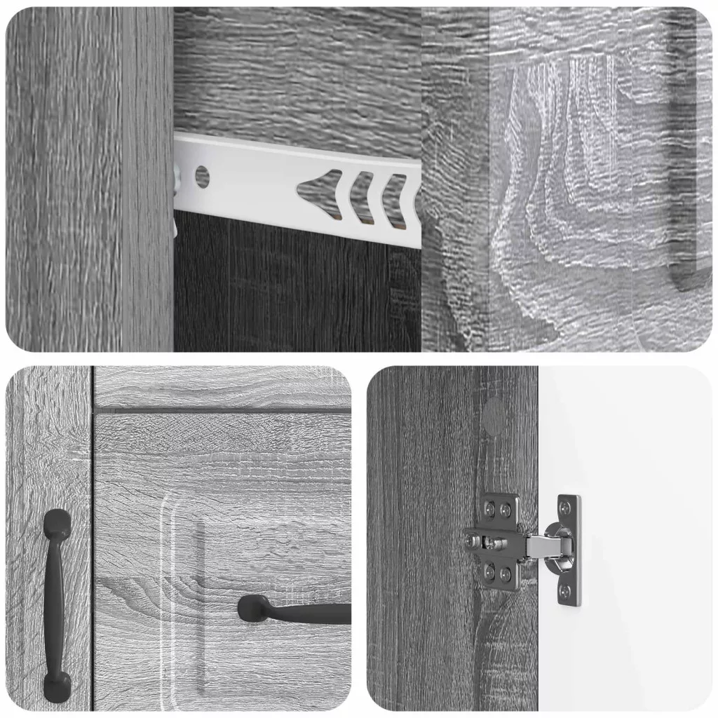 - Stílusos fogantyúk A tálalószekrény elegáns íj fogantyúkkal van ellátva, ami a modern dizájnt ötvözi a funkcionalitással. A fogantyúk kényelmes fogást adnak, így az ajtók és a fiókok könnyedén nyithatók.