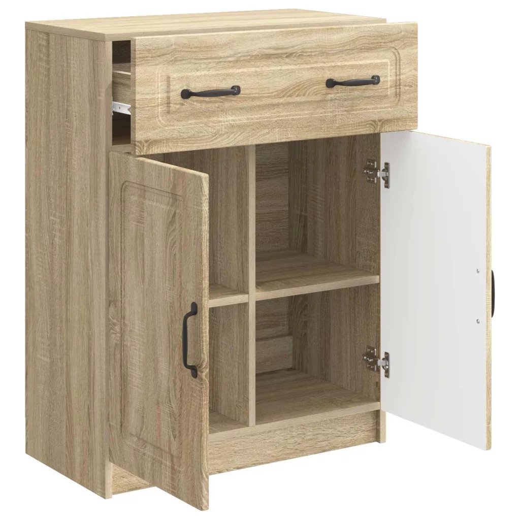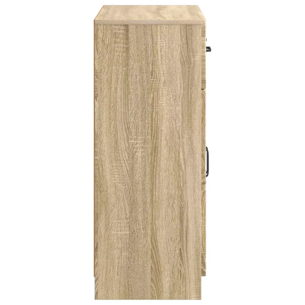 - Anyagok: A tálalószekrény mérnöki faforgácsból készült; tartós és robusztus választás. Kiválóan ellenáll a deformációnak, így hosszú távon is használható. A sima felület könnyen tisztítható, mindig jól mutat.