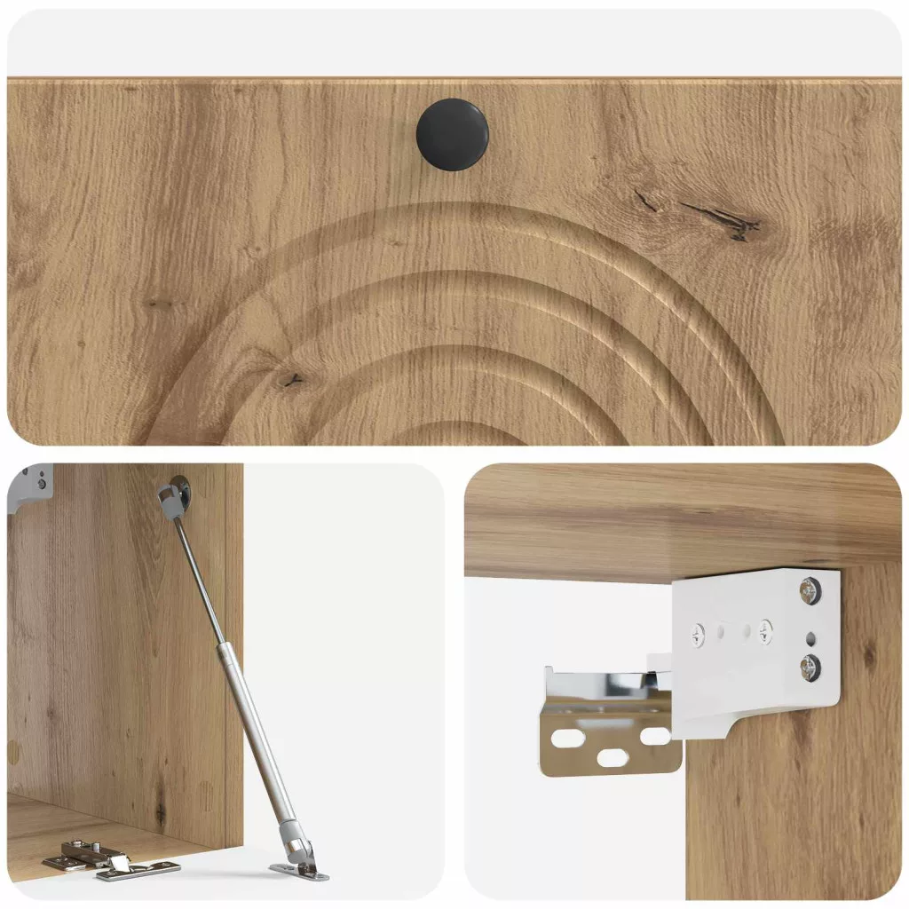 - Beleértve Komponensek: 90°-os lengőpántos ajtókkal, amik megkönnyítik a tárolt dolgok elérését. Ezek az ajtók megjelenésükben és tartósságukban is remekül passzolnak a minimalista dizájnhoz. Fekete fém gombfogantyúkkal egy stílusos kontrasztot adnak, és könnyen használhatóak.
