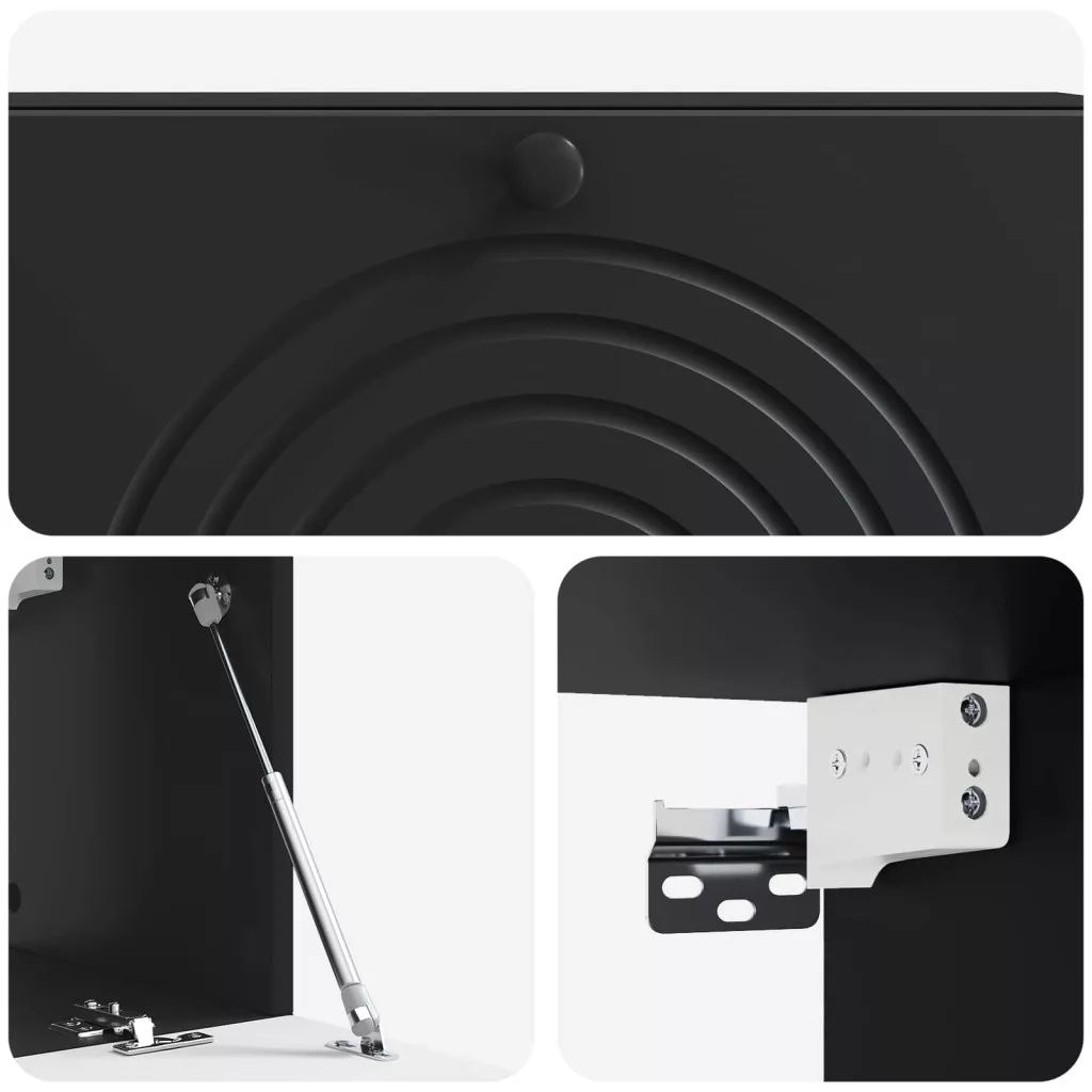 - Beleértve Komponensek: 90°-os lengőpántos ajtókkal, amik megkönnyítik a tárolt dolgok elérését. Ezek az ajtók megjelenésükben és tartósságukban is remekül passzolnak a minimalista dizájnhoz. Fekete fém gombfogantyúkkal egy stílusos kontrasztot adnak, és könnyen használhatóak.