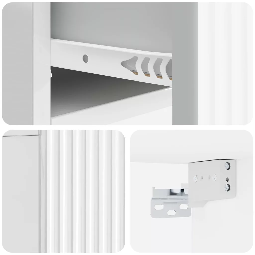 - Mérnökfa szerkezet: A szekrény minőségi mérnökfából készült, így tartós és stílusos. Ez az anyag hosszú távú megbízhatóságot nyújt a napi használat során.