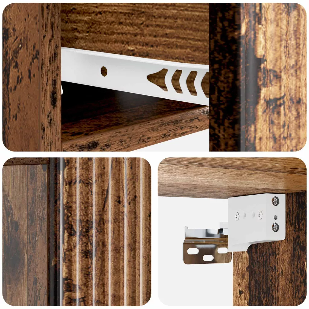 - Mérnökfa szerkezet: A szekrény minőségi mérnökfából készült, így tartós és stílusos. Ez az anyag hosszú távú megbízhatóságot nyújt a napi használat során.