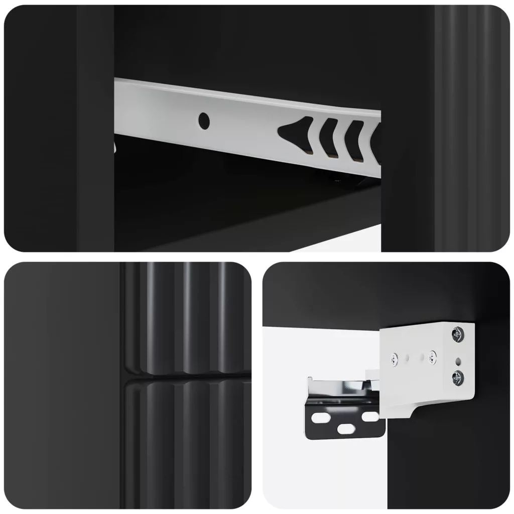 - Egyszerű összeszerelés: Két ember, egy csavarhúzó és egy csavarkulcs szükséges az összeszereléshez. A részletes utasítások segítenek abban, hogy stabilan rögzítse a szekrényt.