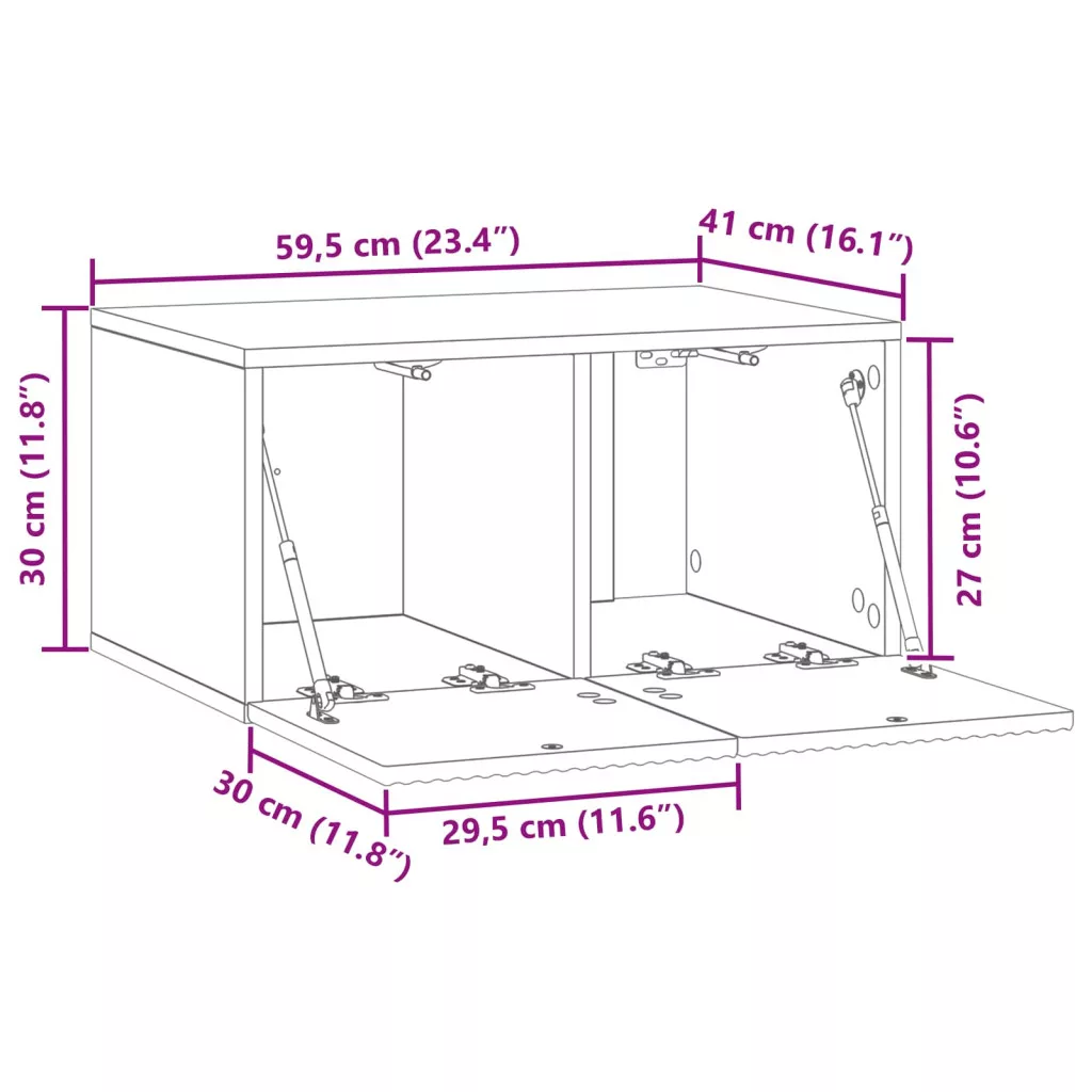 - Általános dimenziók: 59,5 x 41 x 30 cm (Ho x Szé x Ma)