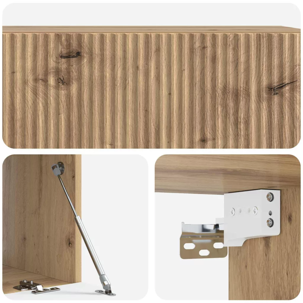 - Felsőanyag: A mérnöki fa tartós és sima felületet biztosít, ellenáll a torzulásnak, és környezetbarát. A letisztult vonalak tovább növelik a modern megjelenését.