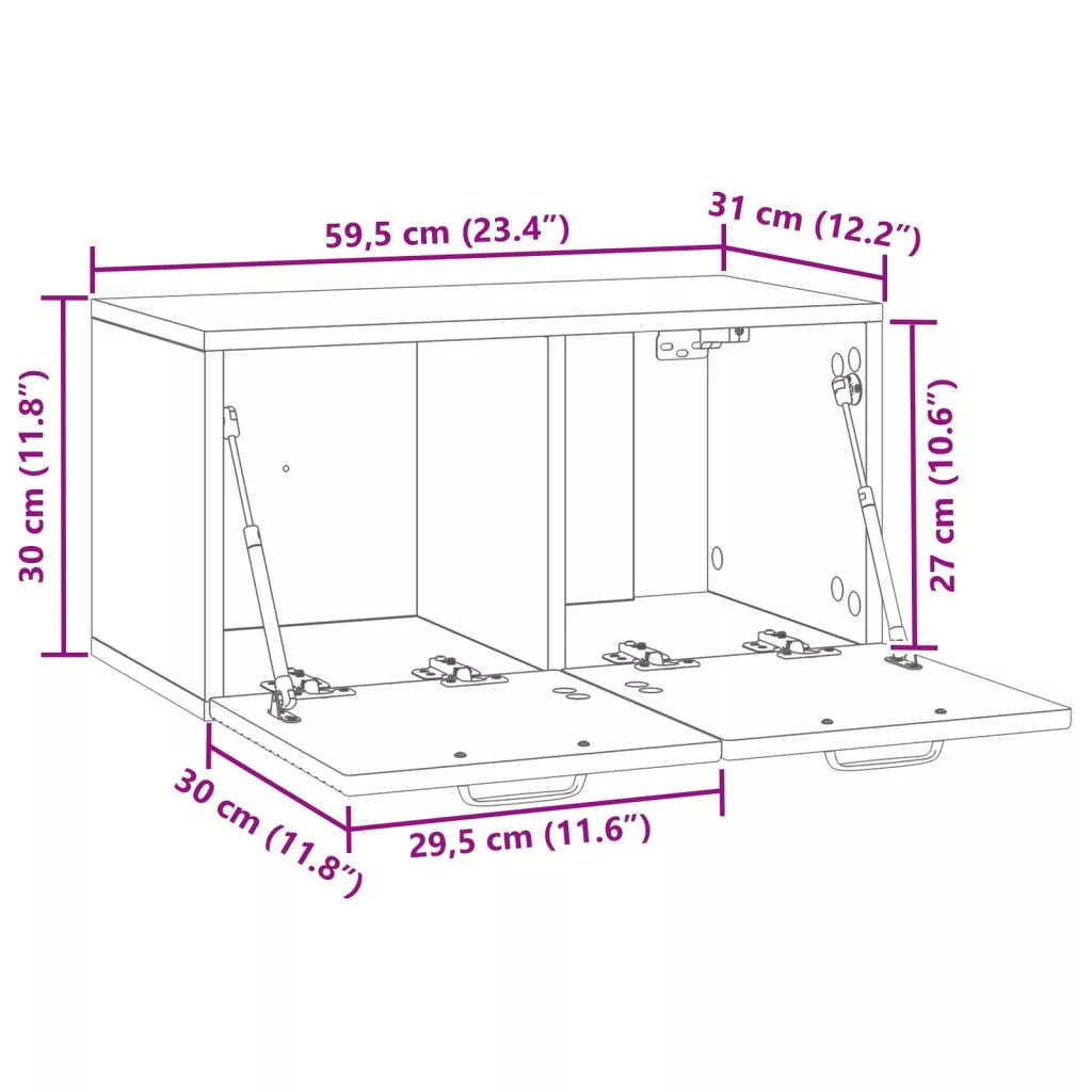 - Általános dimenziók: 59,5 x 31 x 30 cm (Ho x Szé x Ma)