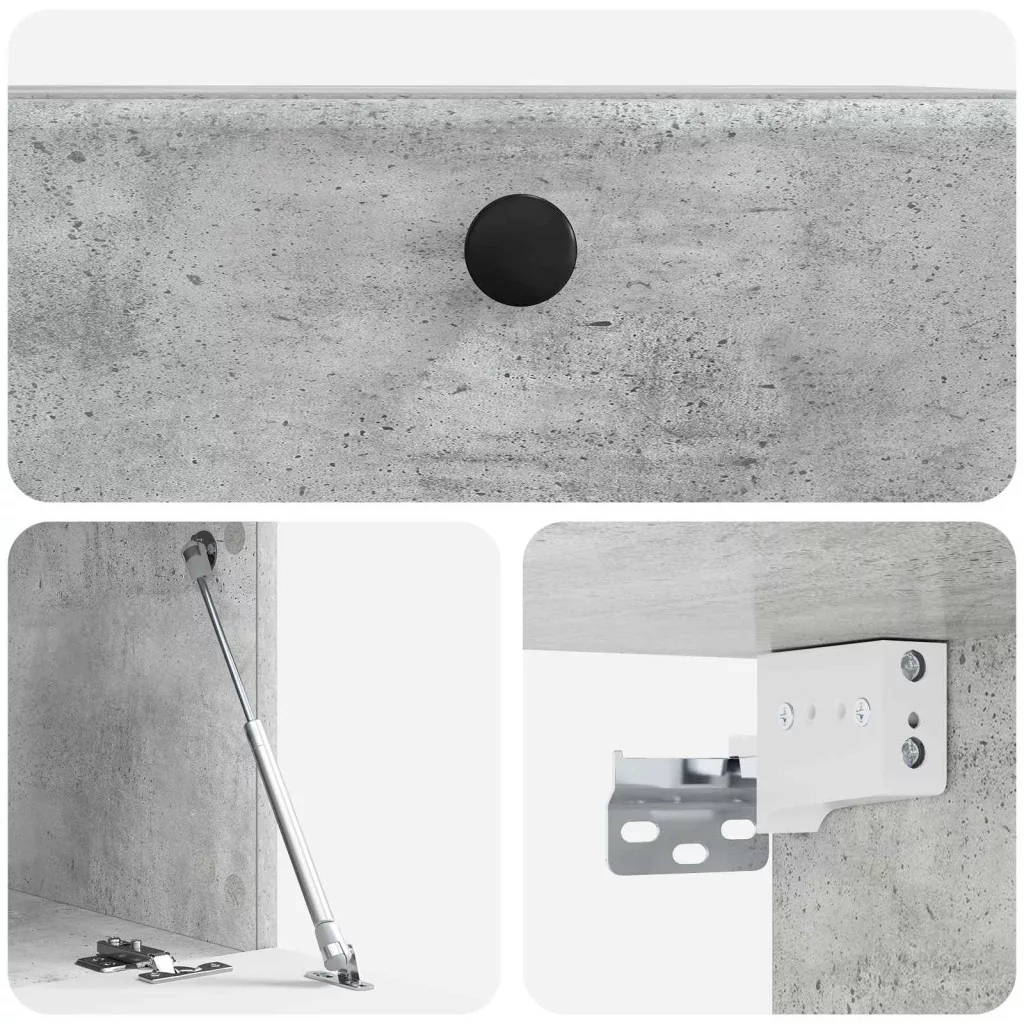 - Szállított elemek: 90°-ban nyíló ajtókkal, a szekrény praktikus fém csavarokkal van felszerelve, amelyek megkönnyítik a tárolók elérését. Minden alkatrész gondosan megtervezett, biztosítva a egyszerű használhatóságot anélkül, hogy rendetlenséget okozna. A falra szerelhető dizájn a maximális padlófelület kihasználására összpontosít, így kifogástalanul illeszkedik a nappalikba.