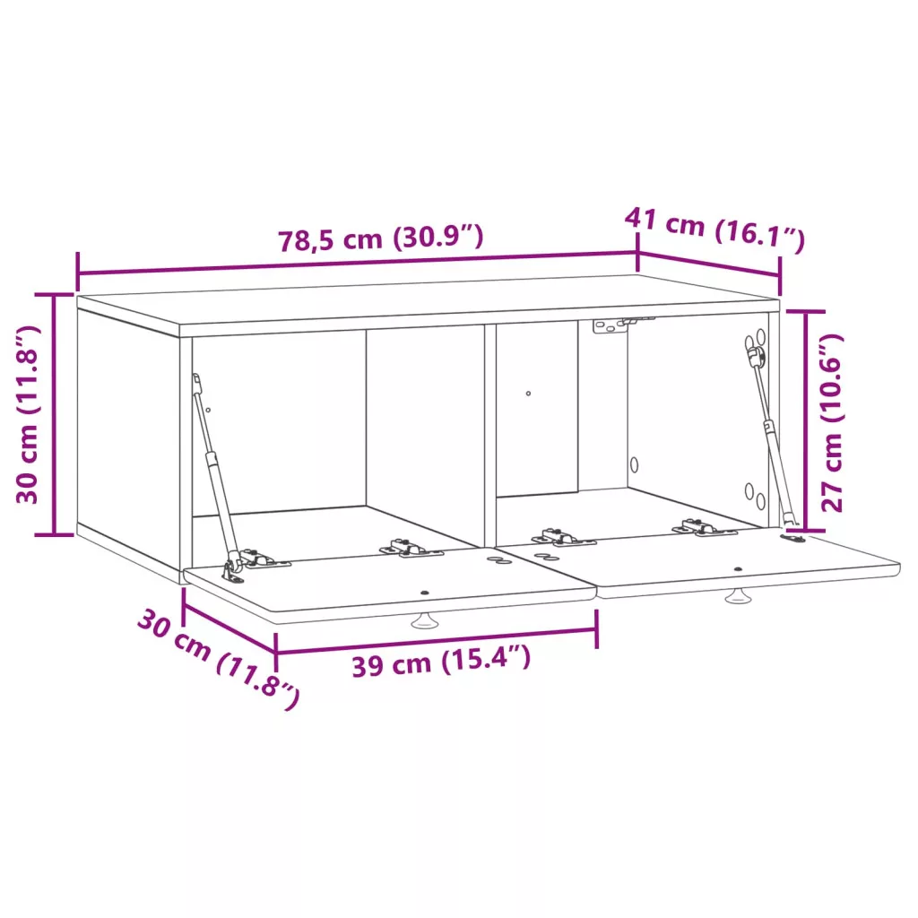 - Általános dimenziók: 78,5 x 41 x 30 cm (Ho x Szé x Ma)