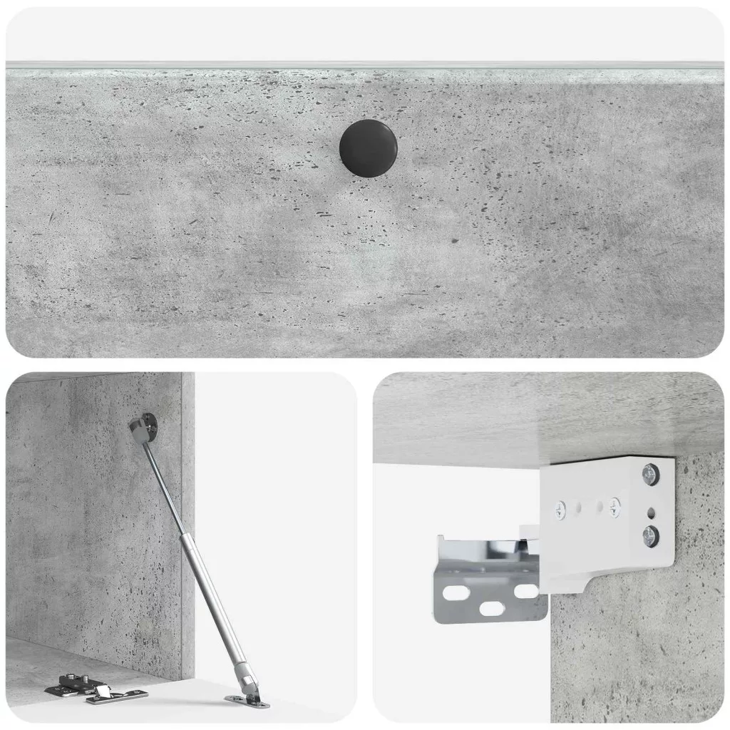 - Szállított elemek: 90°-ban nyíló ajtókkal, a szekrény praktikus fém csavarokkal van felszerelve, amelyek megkönnyítik a tárolók elérését. Minden alkatrész gondosan megtervezett, biztosítva a egyszerű használhatóságot anélkül, hogy rendetlenséget okozna. A falra szerelhető dizájn a maximális padlófelület kihasználására összpontosít, így kifogástalanul illeszkedik a nappalikba.