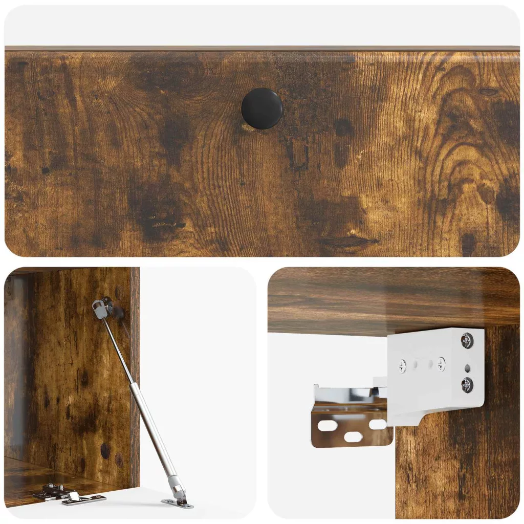 - Szállított elemek: 90°-ban nyíló ajtókkal, a szekrény praktikus fém csavarokkal van felszerelve, amelyek megkönnyítik a tárolók elérését. Minden alkatrész gondosan megtervezett, biztosítva a egyszerű használhatóságot anélkül, hogy rendetlenséget okozna. A falra szerelhető dizájn a maximális padlófelület kihasználására összpontosít, így kifogástalanul illeszkedik a nappalikba.