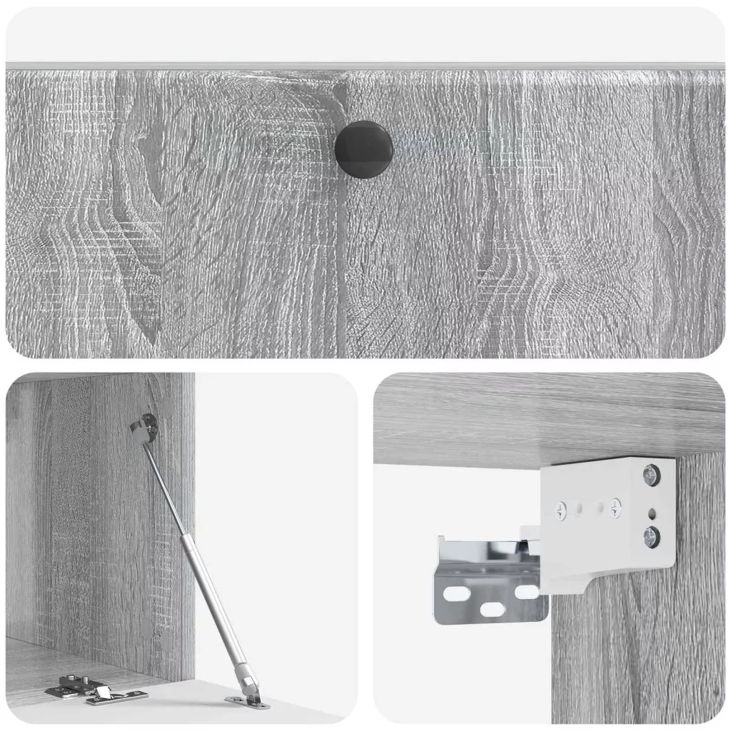 - Szállított elemek: 90°-ban nyíló ajtókkal, a szekrény praktikus fém csavarokkal van felszerelve, amelyek megkönnyítik a tárolók elérését. Minden alkatrész gondosan megtervezett, biztosítva a egyszerű használhatóságot anélkül, hogy rendetlenséget okozna. A falra szerelhető dizájn a maximális padlófelület kihasználására összpontosít, így kifogástalanul illeszkedik a nappalikba.