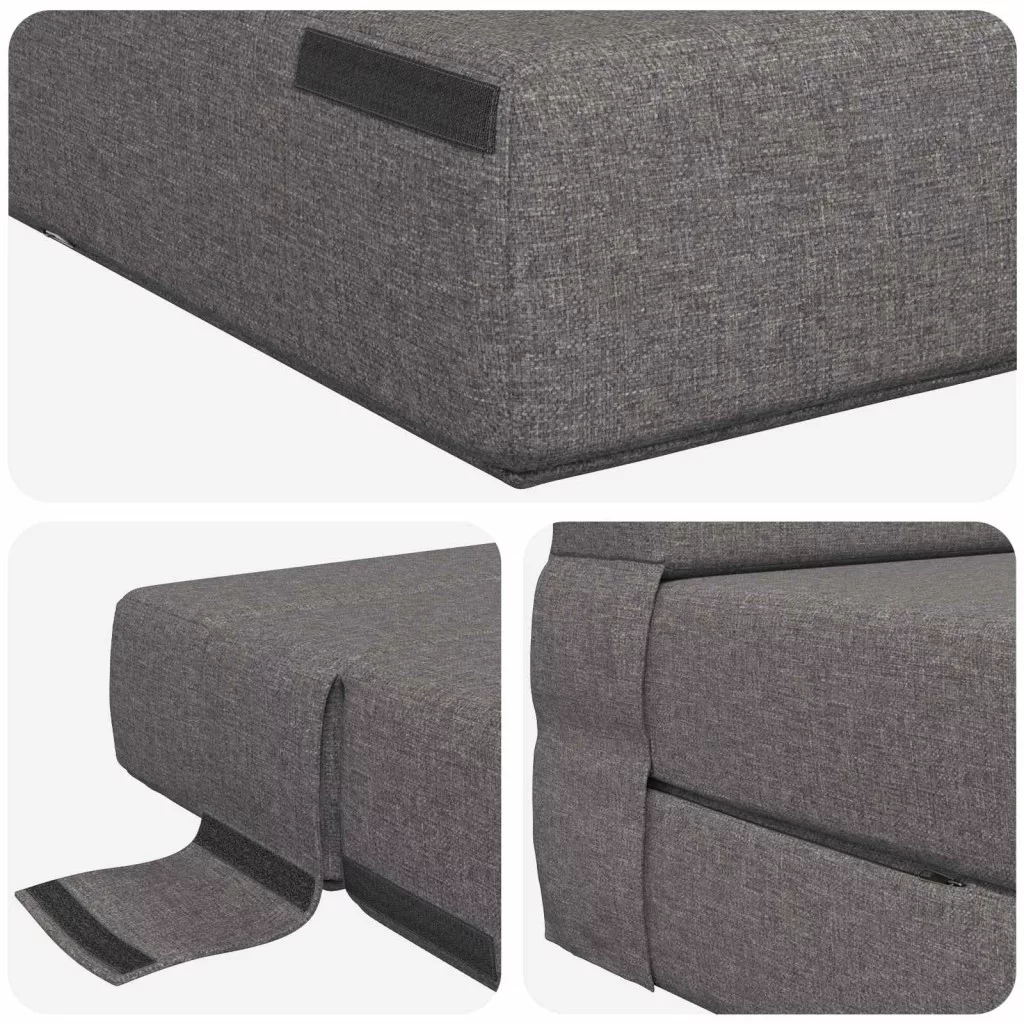 - Biztonságos és stabil beállítás: A kanapéágy tépd-záras rögzítőket tartalmaz, amelyek megakadályozzák, hogy elmozduljon, így biztosítva a stabilitást akár kanapéként, akár ágyként használod. Ezek a zárások egyszerűsítenek a használaton, csökkentve az aggodalmakat a helyzetbeállítással kapcsolatban.