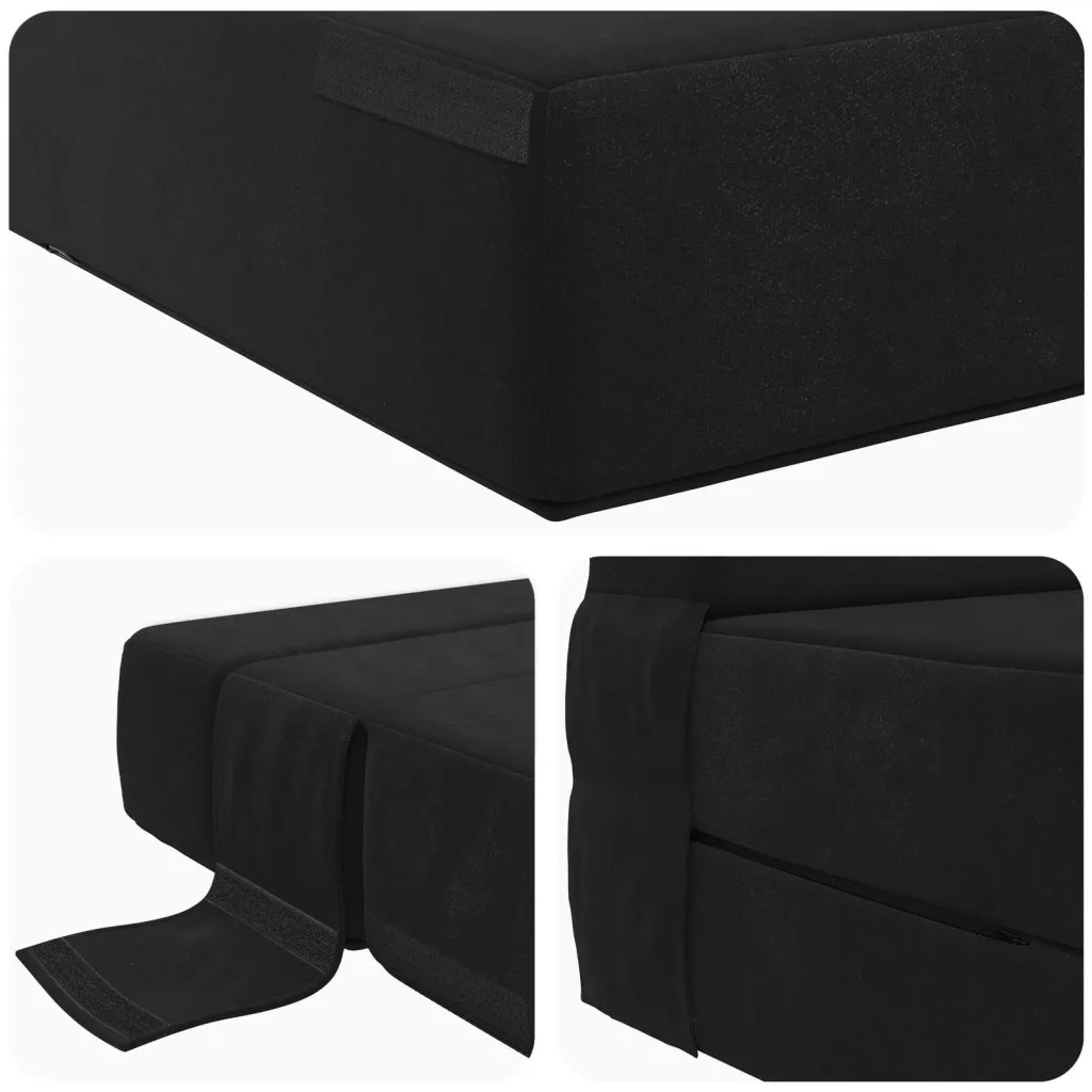 - Biztonságos és stabil beállítás: A kanapéágy tépd-záras rögzítőket tartalmaz, amelyek megakadályozzák, hogy elmozduljon, így biztosítva a stabilitást akár kanapéként, akár ágyként használod. Ezek a zárások egyszerűsítenek a használaton, csökkentve az aggodalmakat a helyzetbeállítással kapcsolatban.