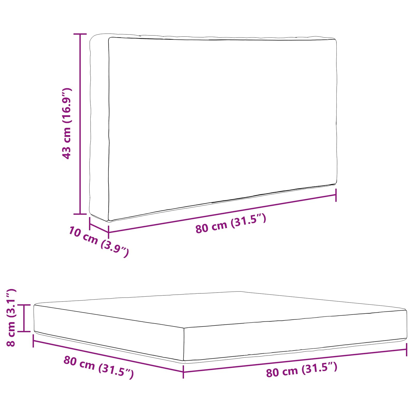 - 1 x ülés párna: 80 x 80 x 8 cm (HxSzxM)