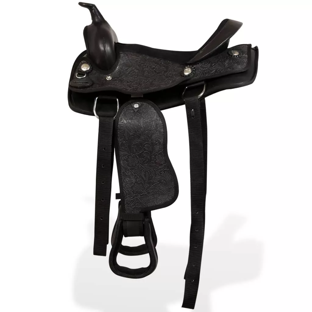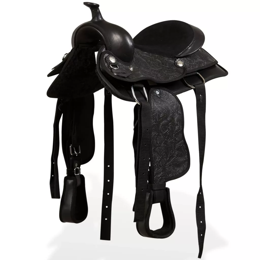 A kiváló minőségű bőr és műbőr, melyet dombornyomásos virágminta díszít, nemcsak dekoratívvá, hanem praktikussá is varázsolja a nyerget. A western nyereg a strapabíró-képesség növelése érdekében minden nyomásponton meg lett erősítve. A bőr kengyelek a hevedertartó szíjakhoz és a hevederekhez hasonlóan masszívak és kopásállók. A nyereg a ló és lovas számára is egyaránt rendkívül kényelmes, így akár hosszú órákon át is lovagolhatunk benne ülve.