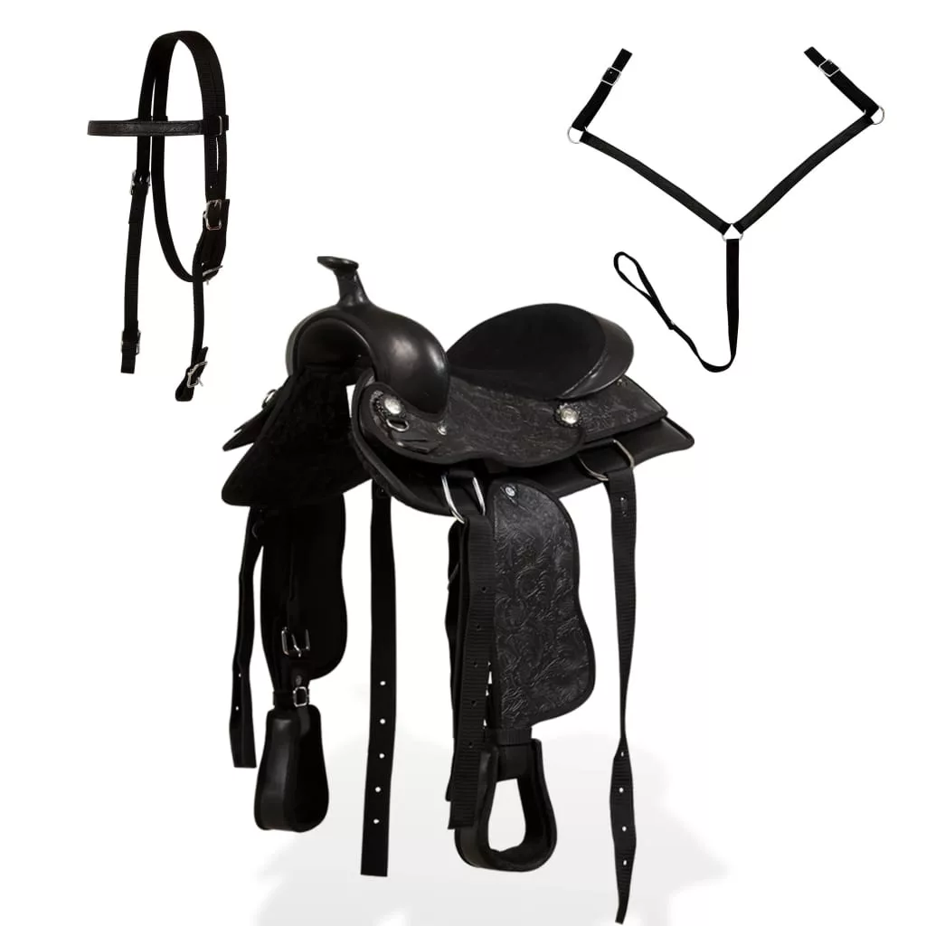 Ehhez a western nyereghez egy hozzáillő kötőfék és nyakhám is jár