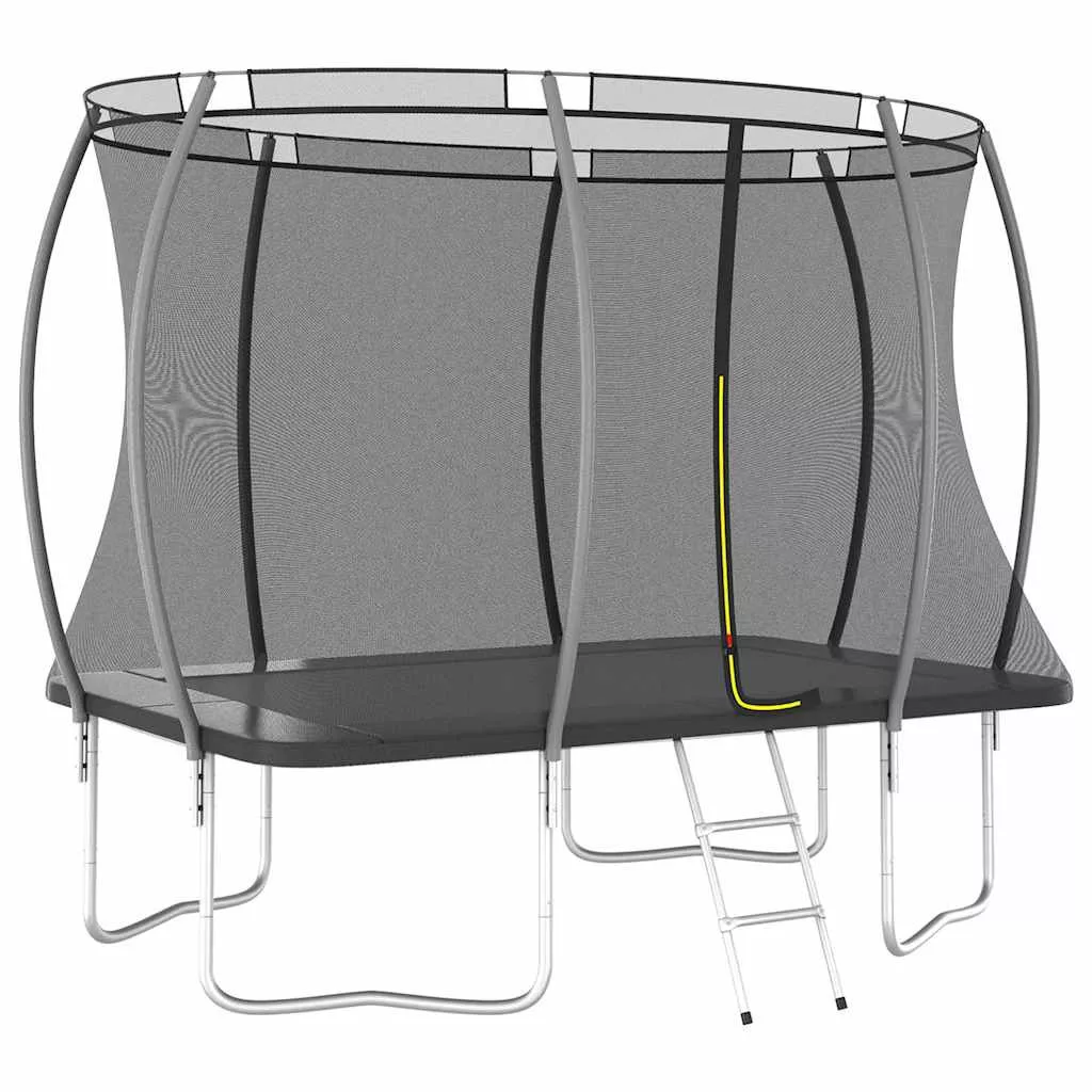 Téglalap alakú trambulinunkkal garantált a szórakozás és az ugrálás! Trambulinszettünk védőhálót, bejárati létrát, és eső elleni védőhuzatot is tartalmaz.