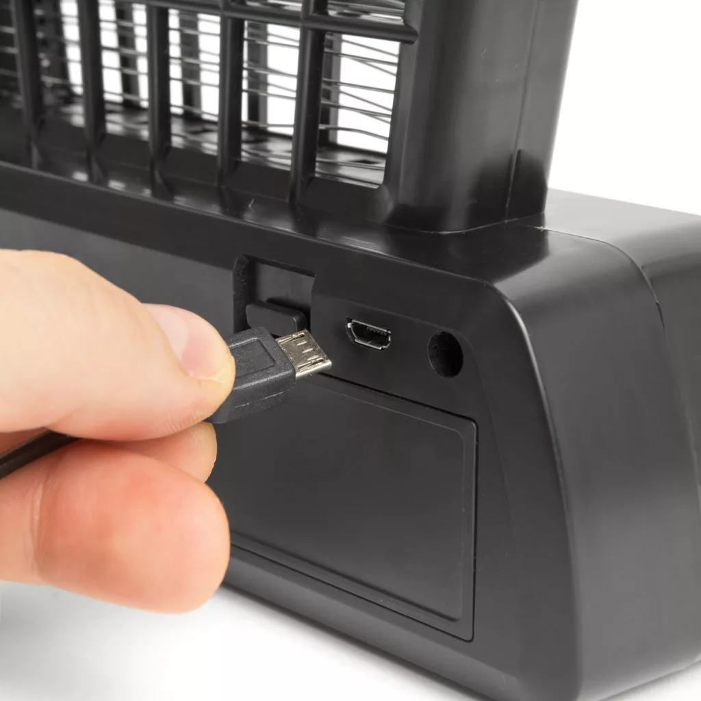 Dupla tápellátással rendelkező asztali rovarcsapda. A kellemetlen csípő szárnyas rovarokat (pl. a szúnyogokat) és kis légyféléket az ultraibolya fény vonzza. Útjukon a fényforrás felé nekirepülnek a feszültség alatt lévő elektródának, és az gyorsan, fájdalommentesen és higiénikusan megöli őket. Használható a tartozékként kapott USB kábel segítségével és akkumulátoros tápellátással is. Ha az USB tápellátás megszűnik, a készülék akkumulátoros módra vált.