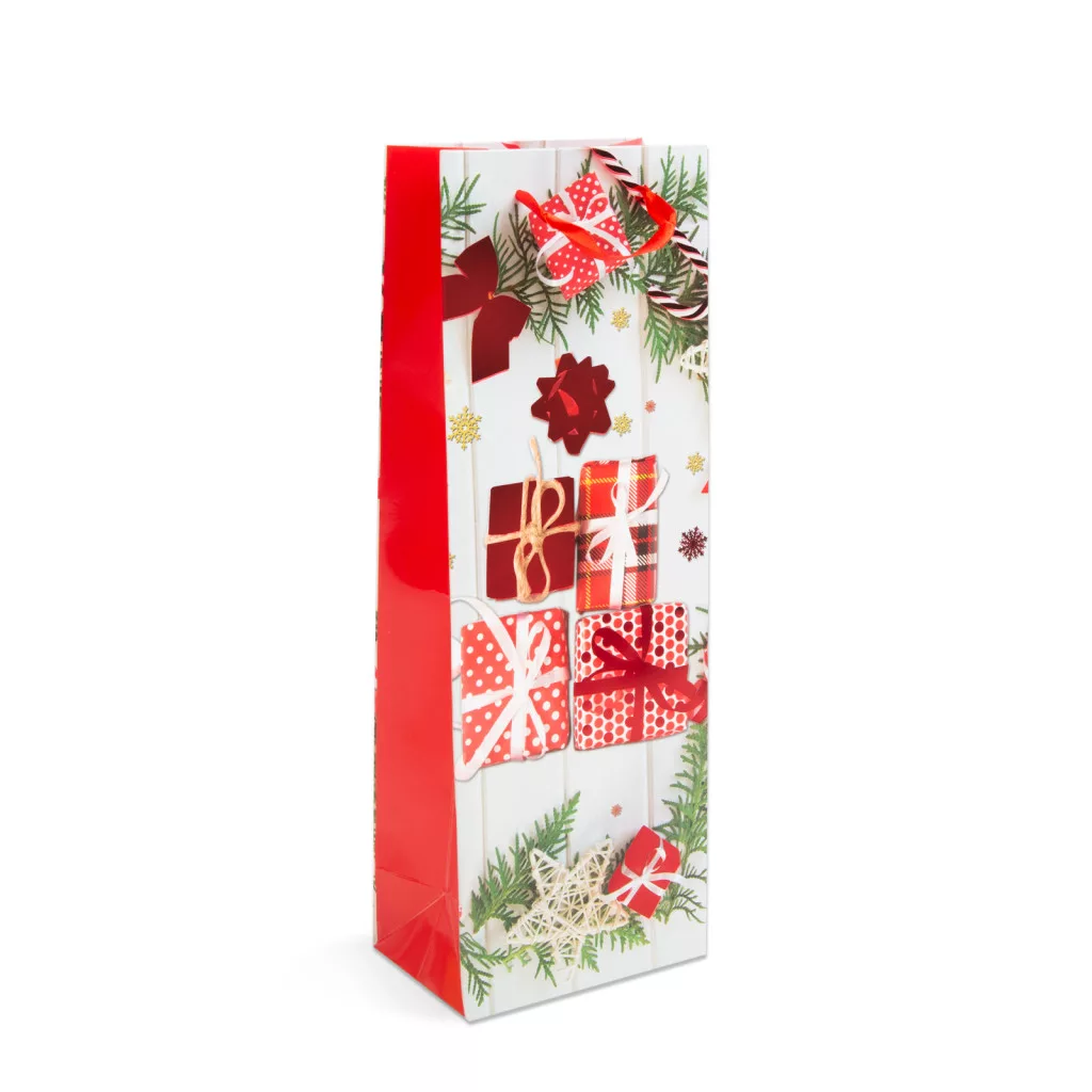 Ha szeretné stílusosan átadni ajándékát a karácsonyi ünnepek alkalmával, akkor ez a karácsonyi italostasak tökéletes választás. Kiváló minőségű, tartós papírból készült, és mérete miatt ideális a legtöbb italosüveg átnyújtására.