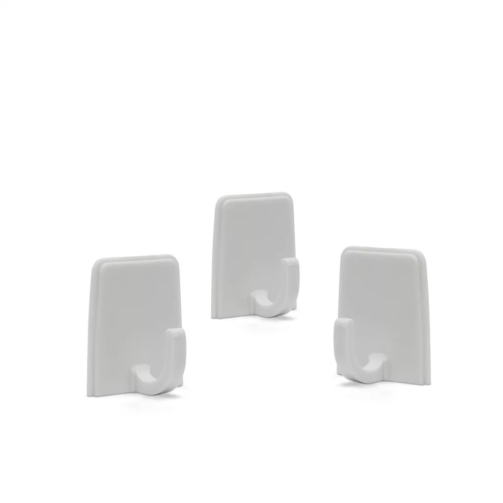 9 darabos akasztó szett, mely öntapadó hátuljának köszönhetően stabilan fennmarad a síkfelületeken.