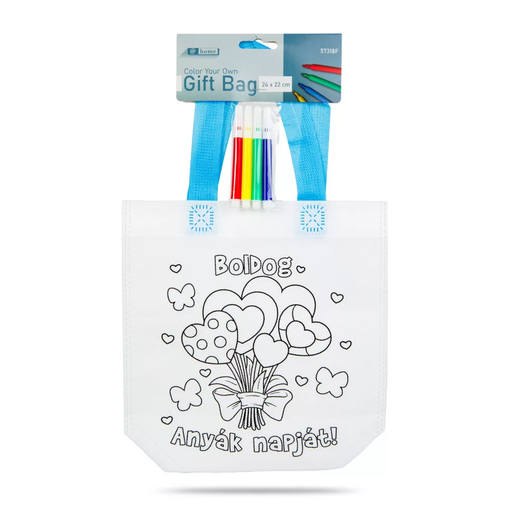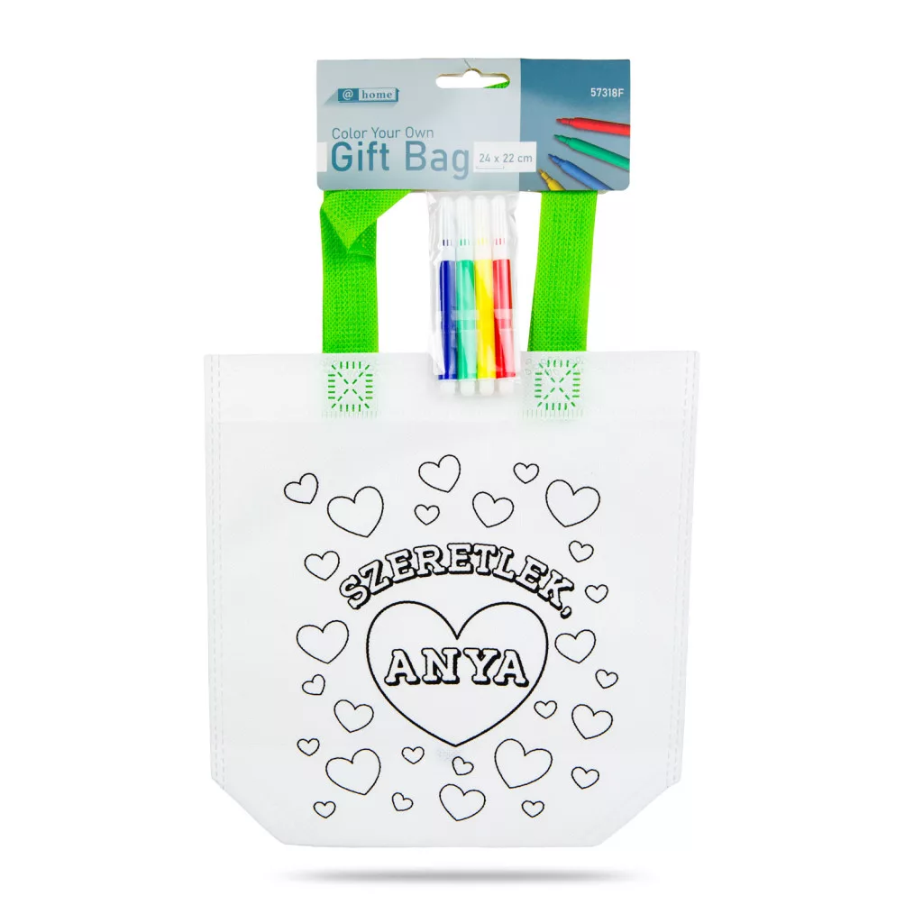 Színezhető ajándéktáska - 4 filccel - 24 x 22 cm - 2 féle