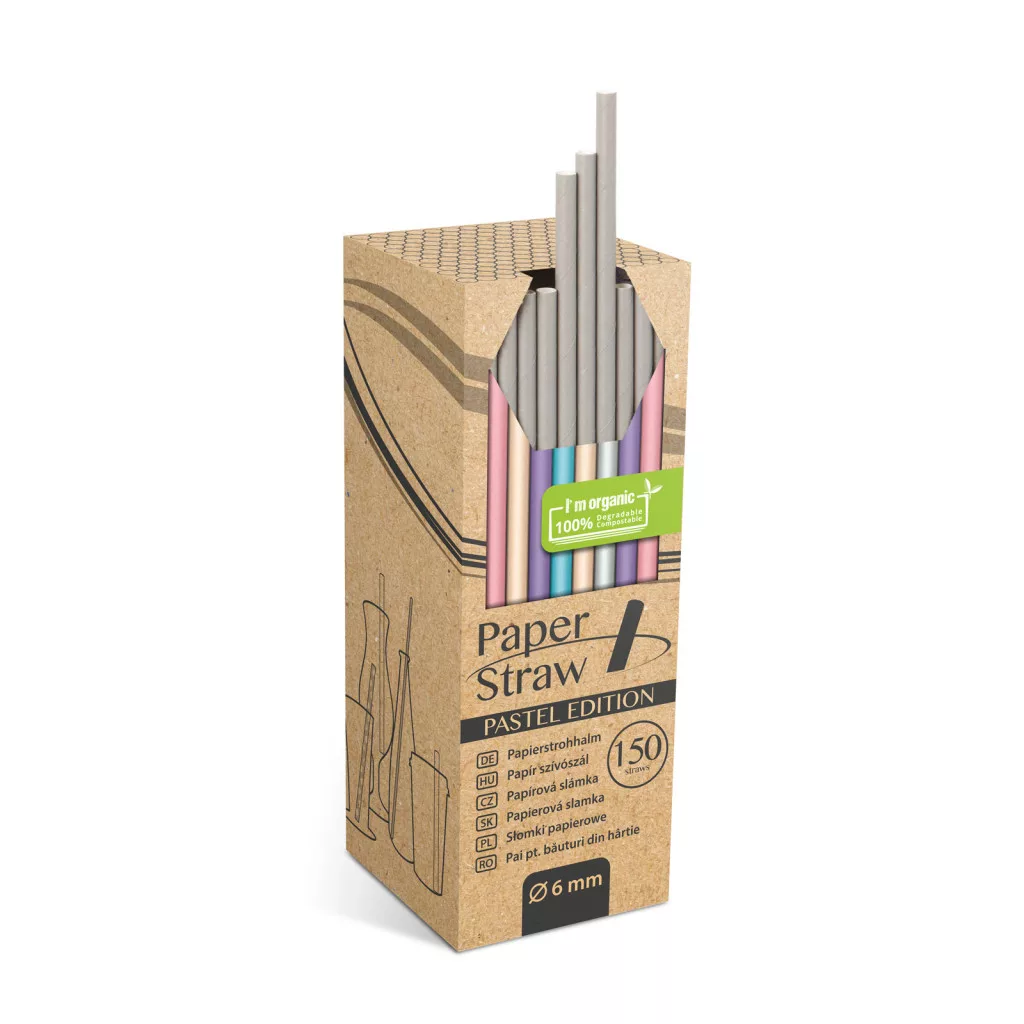 Papír szívószál - pasztel - 197 x 6 mm - 5 féle - 150 db / csomag
