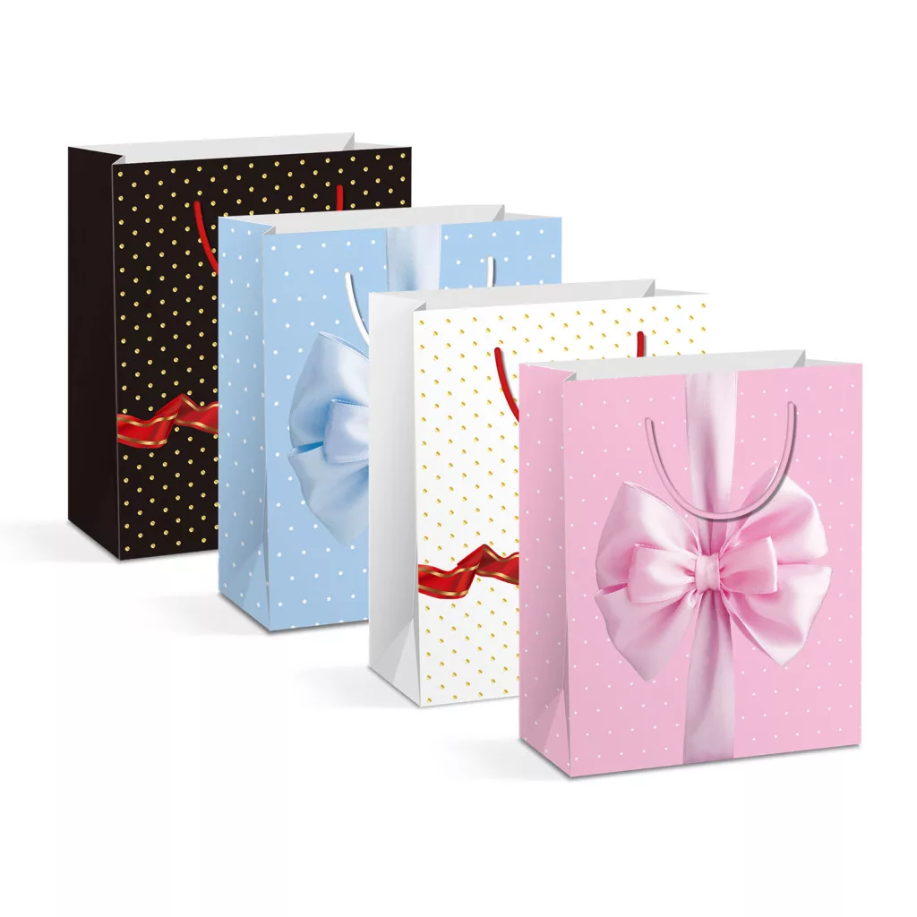 Ajándéktasak - papír - 265 x 127 x 330 mm - 4 féle / csomag - 12 db / csomag