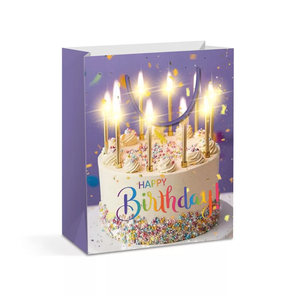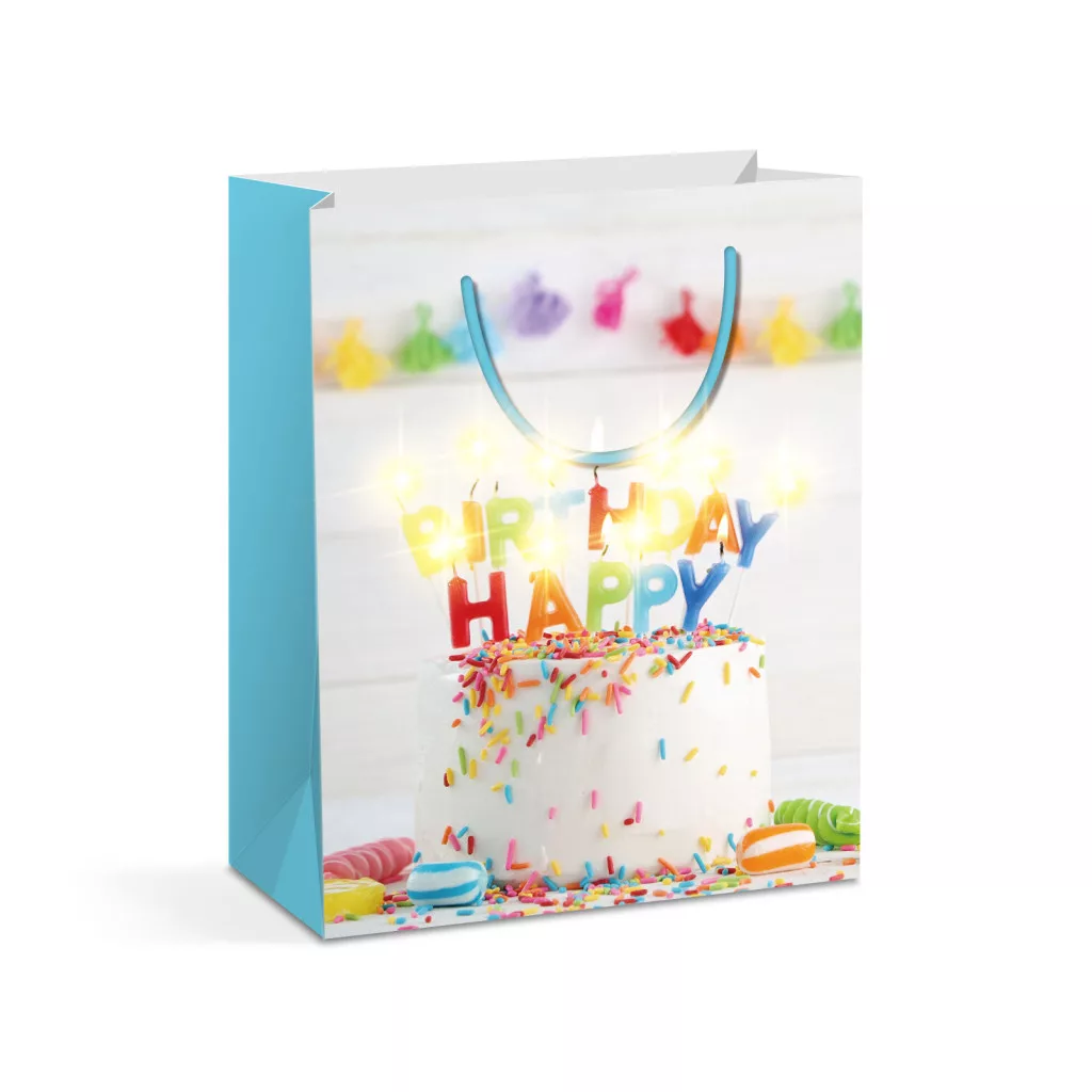 Ajándéktasak - 10 melegfehér LED, papír - 265 x 127 x 330 mm - 4 féle / csomag - 12 db / csomag