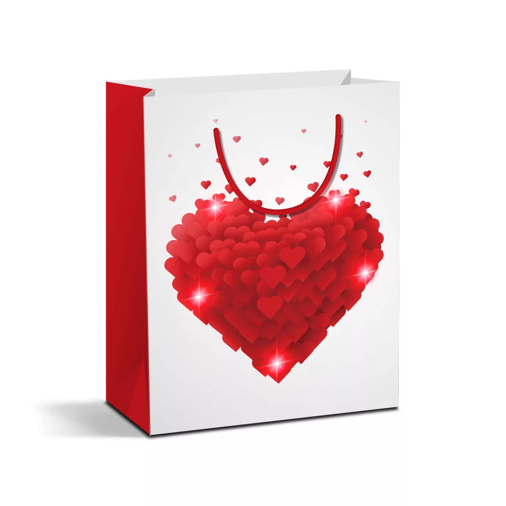 Az ajándéktasak oldalát különleges minta díszíti és kiváló minőségű papírból készült, hogy hosszútávon is tökéletesen szolgáljon. A tasakon elhelyezett LED-ek különleges hangulatot teremtenek, melyek energiájáról a beépített elemek gondoskodnak.