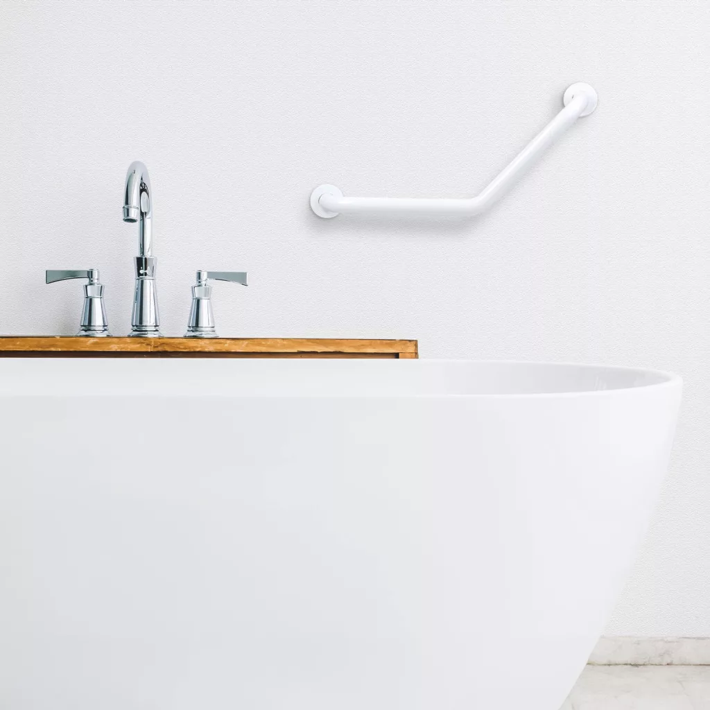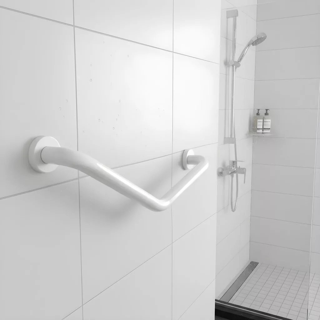 Ez a 45°-ban hajlított falra szerelhető kapaszkodó praktikus és biztonságos megoldást nyújt a fürdőszobában és WC-ben. Kiváló választás illemhelyek akadálymentesítéséhez. Megkönnyítheti a kádba belépést az idősebb korosztálynak, terhes nőknek, mozgásában korlátozott személyeknek, illetve a gyerekeknek is. Rozsdamentes acélból készült, így könnyen tisztítható. A csomag minden szükséges szerelési tartozékot tartalmaz.