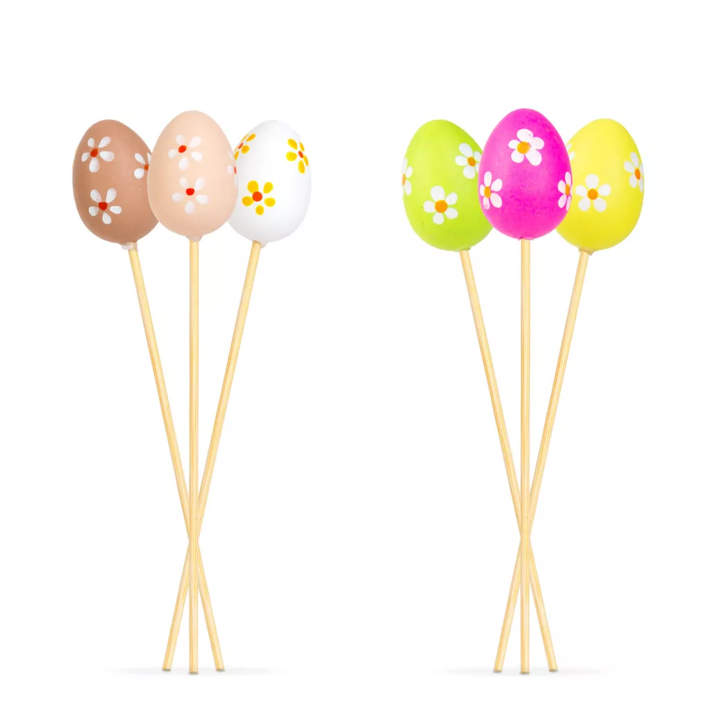 Tegye még ünnepibbé otthonát ezzel a különleges húsvéti dekorációval! A szett 12 darab, 6 különböző mintájú, leszúrható tojásdíszt tartalmaz, melyek kiválóan alkalmasak virágkompozíciók, ajándékcsomagolások vagy asztali dekorációk kiegészítésére.
