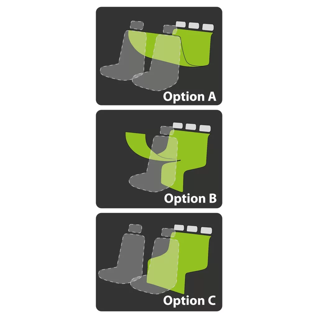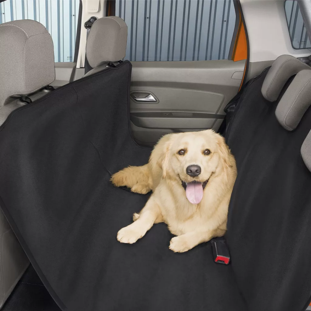 Autós ülésvédő huzat elsősorban kutyák, macskák részére. Egyszerűen rögzíthető a hátsó fejtámlákra a csatos, gumis kialakításnak köszönhetően. Vízálló vászon anyaga megvédi az autó ülését kutyák, macskák által okozott szennyeződésektől. (sár, nyál, elhullajtott szőr...) Ideális lehet kisméretű csomagtartóval rendelkező autókhoz, ahol nem oldható meg a háziállat utaztatása csak a hátsó üléseken. A termék rendelkezik egy cipzárral, amely segítségével az egyik oldal ülőlapja leválasztható, ha utast is szeretne szállítani a háziállat mellett.