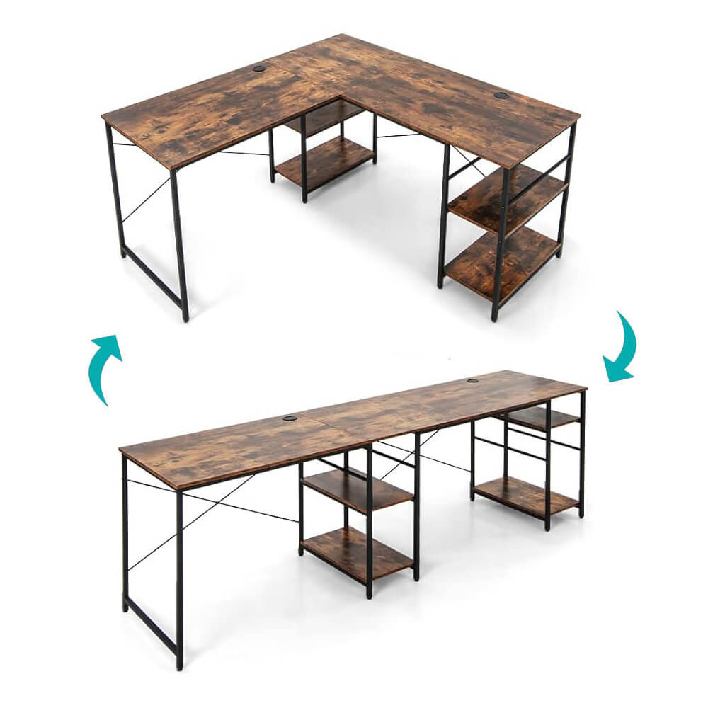• 1 db átalakítható L alakú íróasztal polcokkal