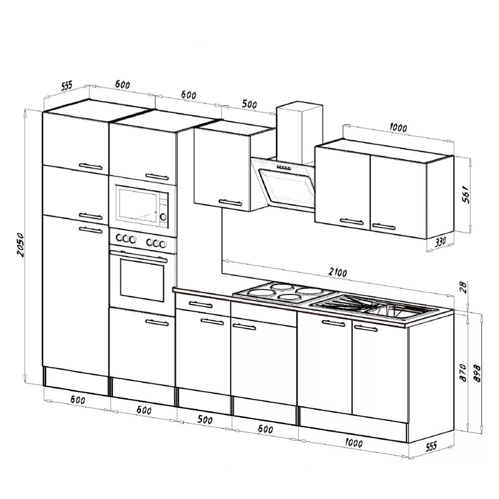 A termék oldalsó kamraszekrényei többféleképpen is összeszerelhetők. A 60-as kamraszekrényben kialakítható egy beépíthető sütőt befogadó összeállítás, vagy egy sütőt és mikrohullámú sütőt befogadó összeállítás.