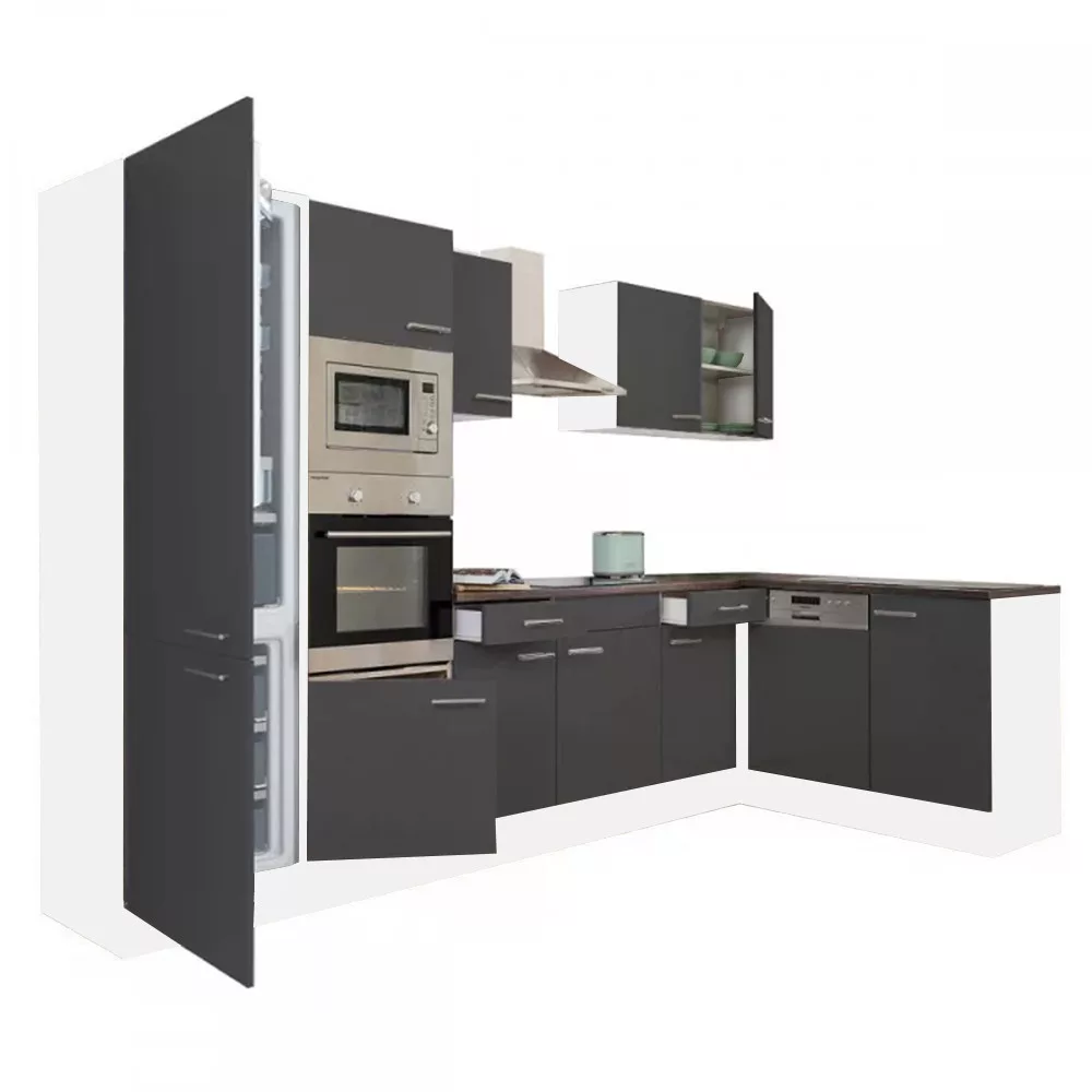 Yorki 340 sarok konyhablokk fehér korpusz, selyemfényű antracit fronttal. A tökéletes konyha megteremtője!